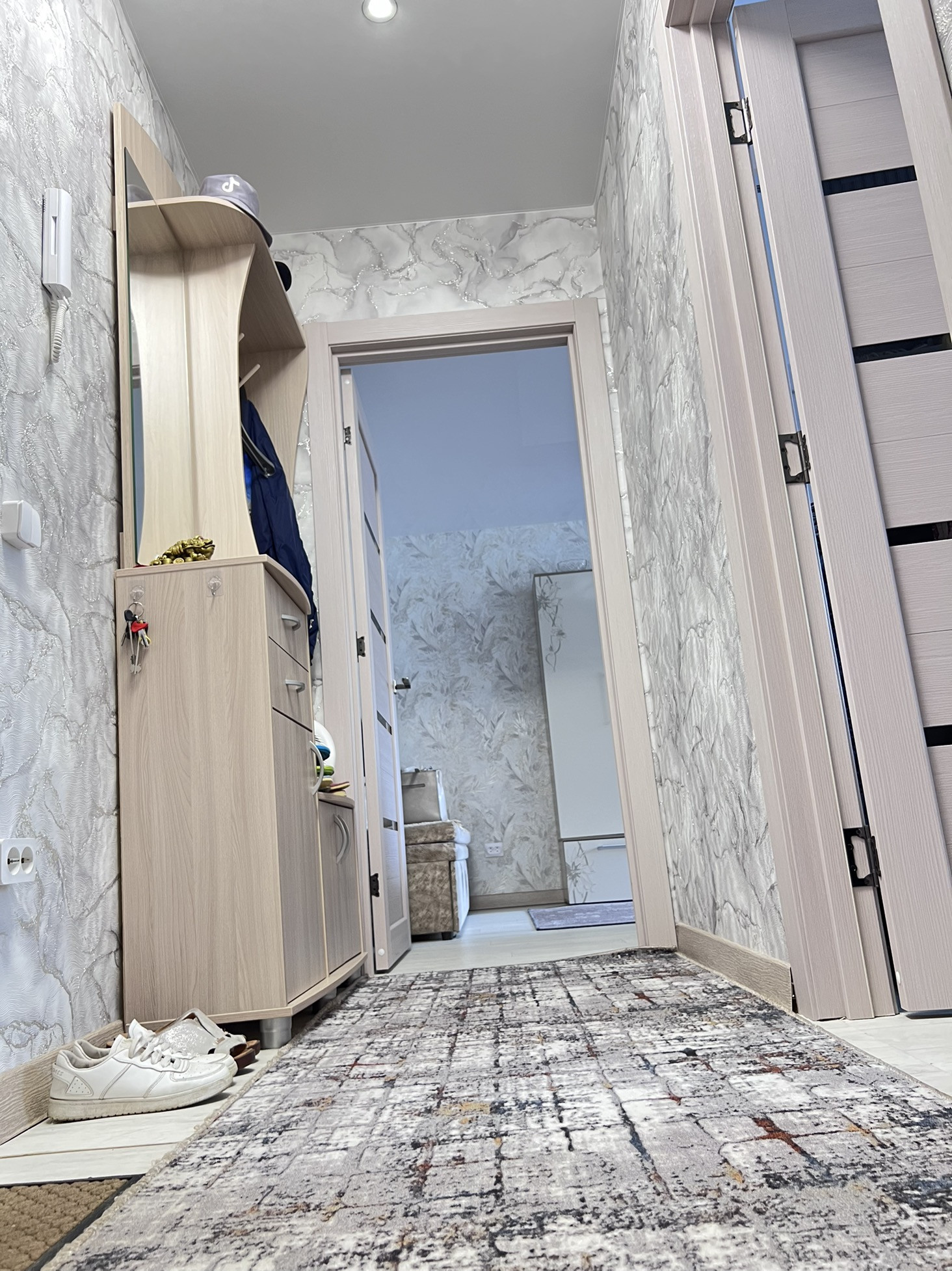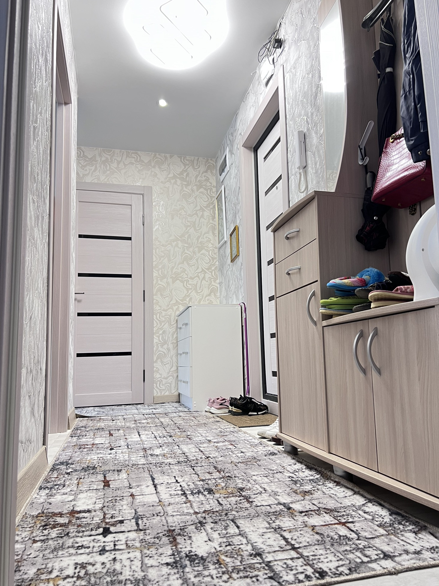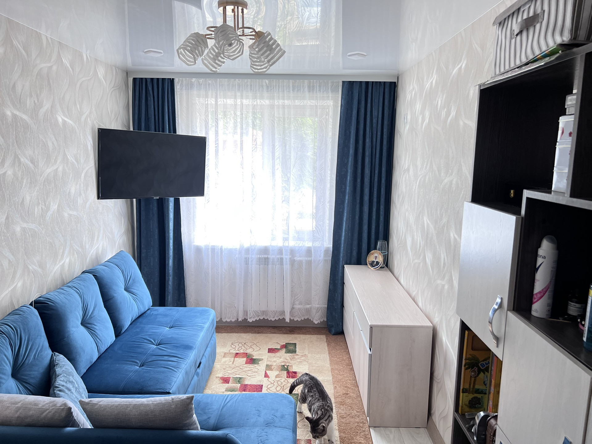 - стены оклеены обоями;