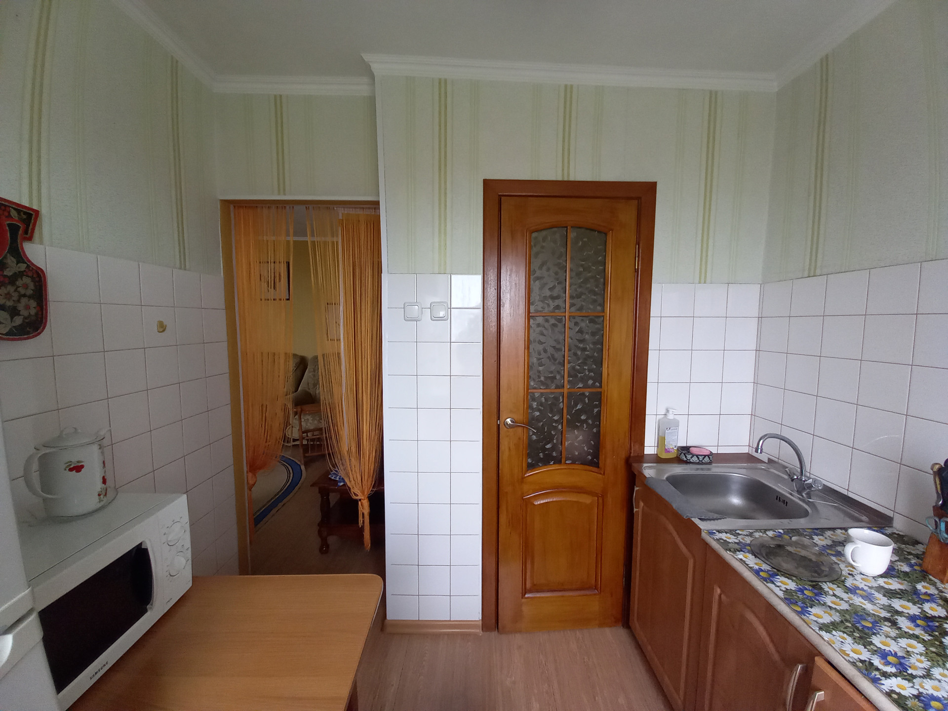 Квартира светлая, теплая. Состояние жилое.  Окна пластиковые, кафель, натяжные потолки.