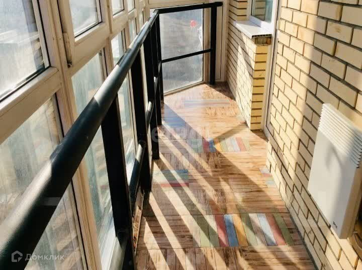 - панорамное остекление балкона, натяжной потолок, на полу керамогранит;