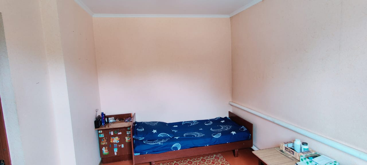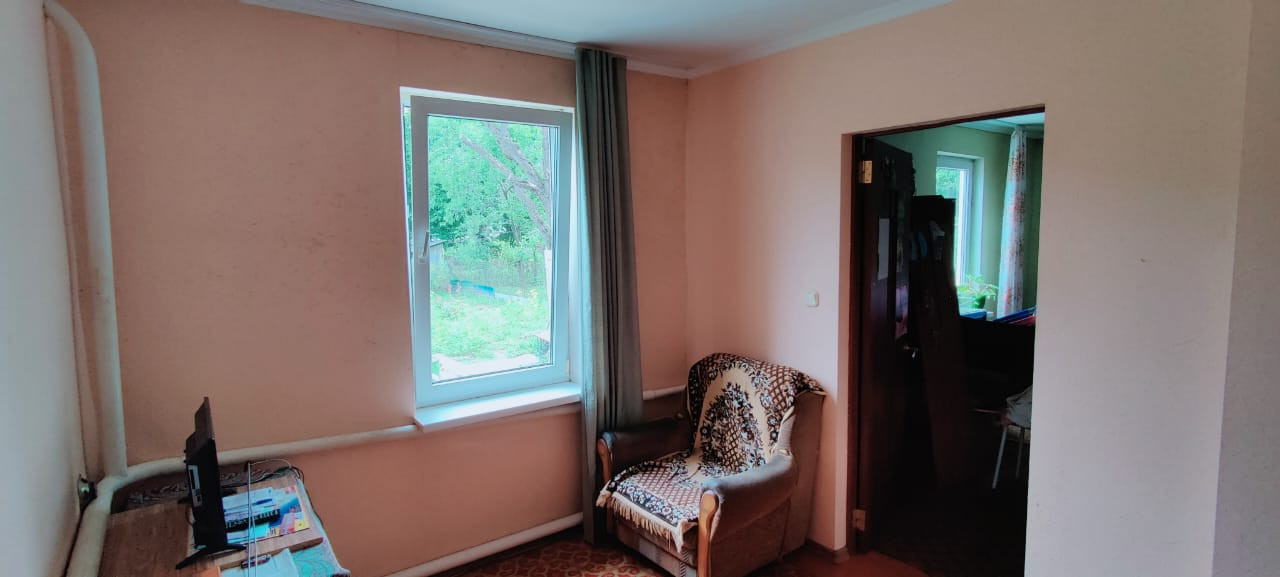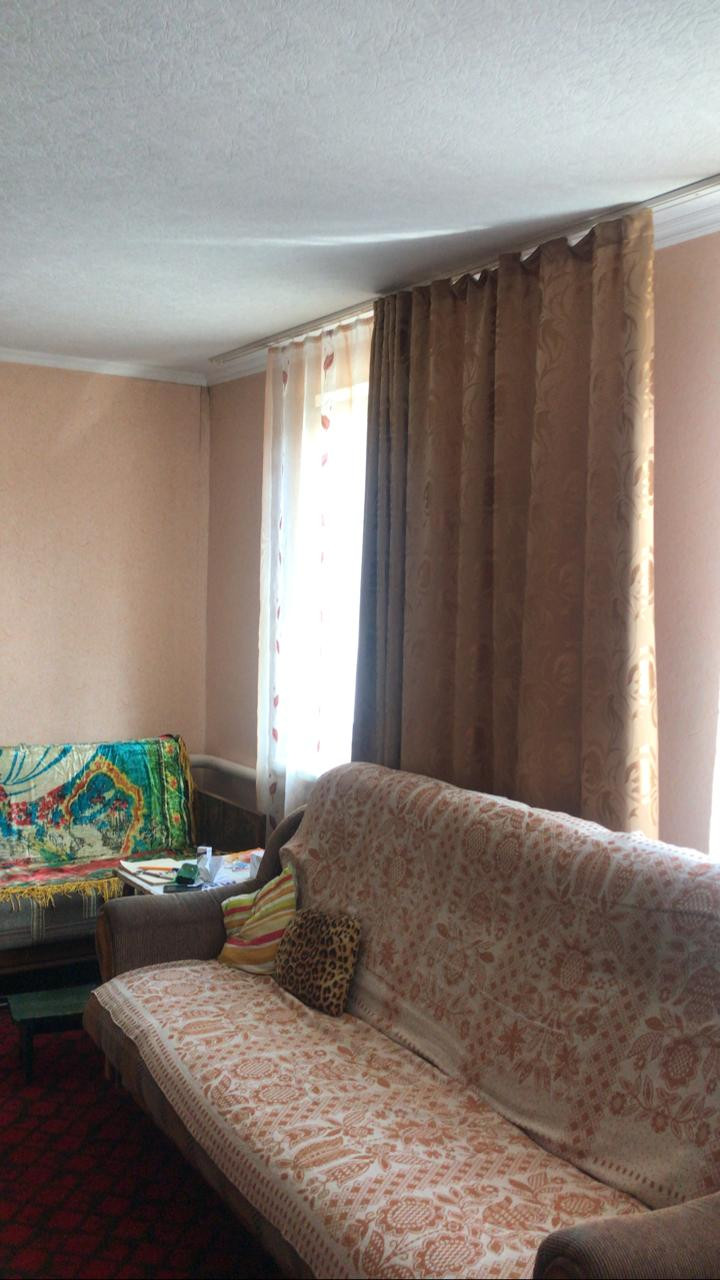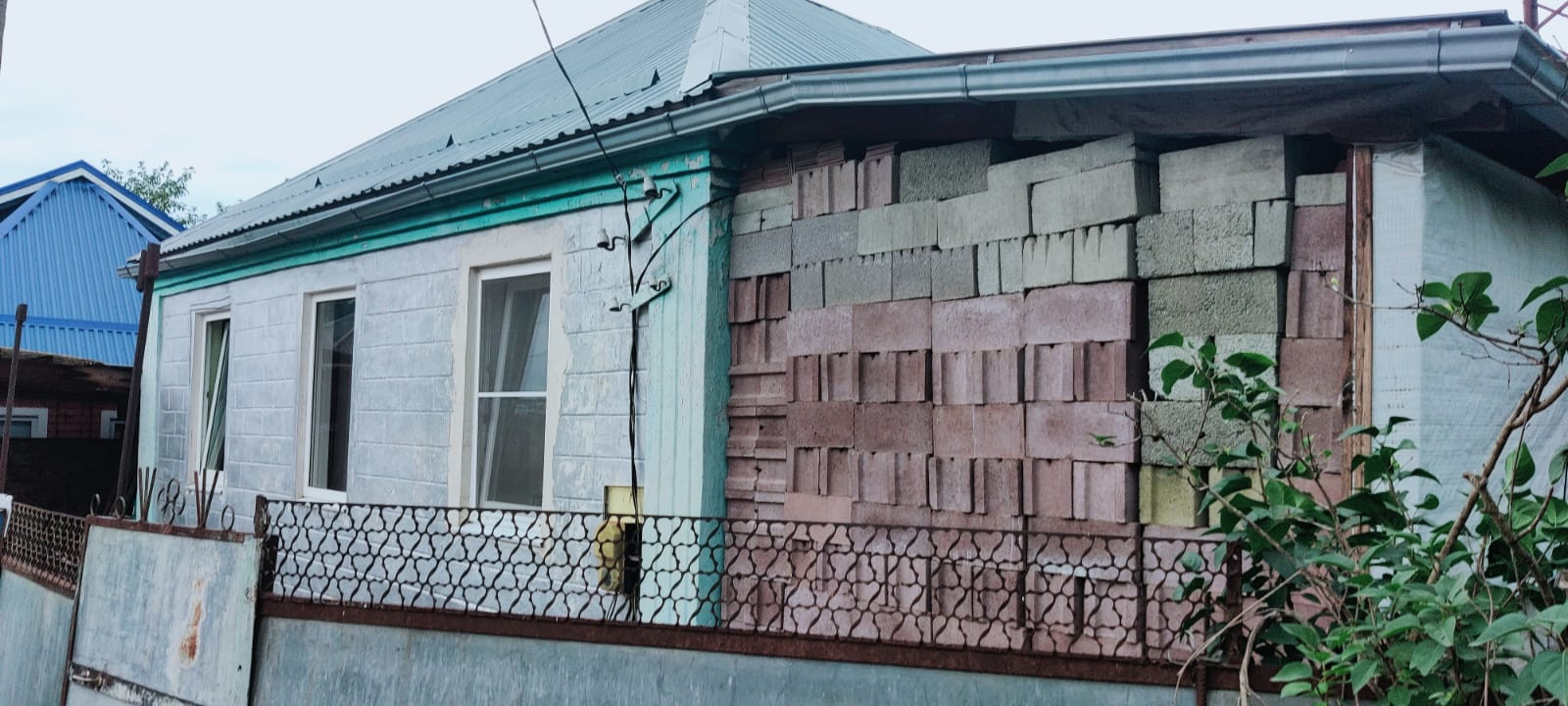 Район "за мостом". Две изолированные комнаты. Зал. Столовая. Кухня на входе. Кровля (оцинкованный профнастил) выведена под пристройку санузла. Сами не завершили.