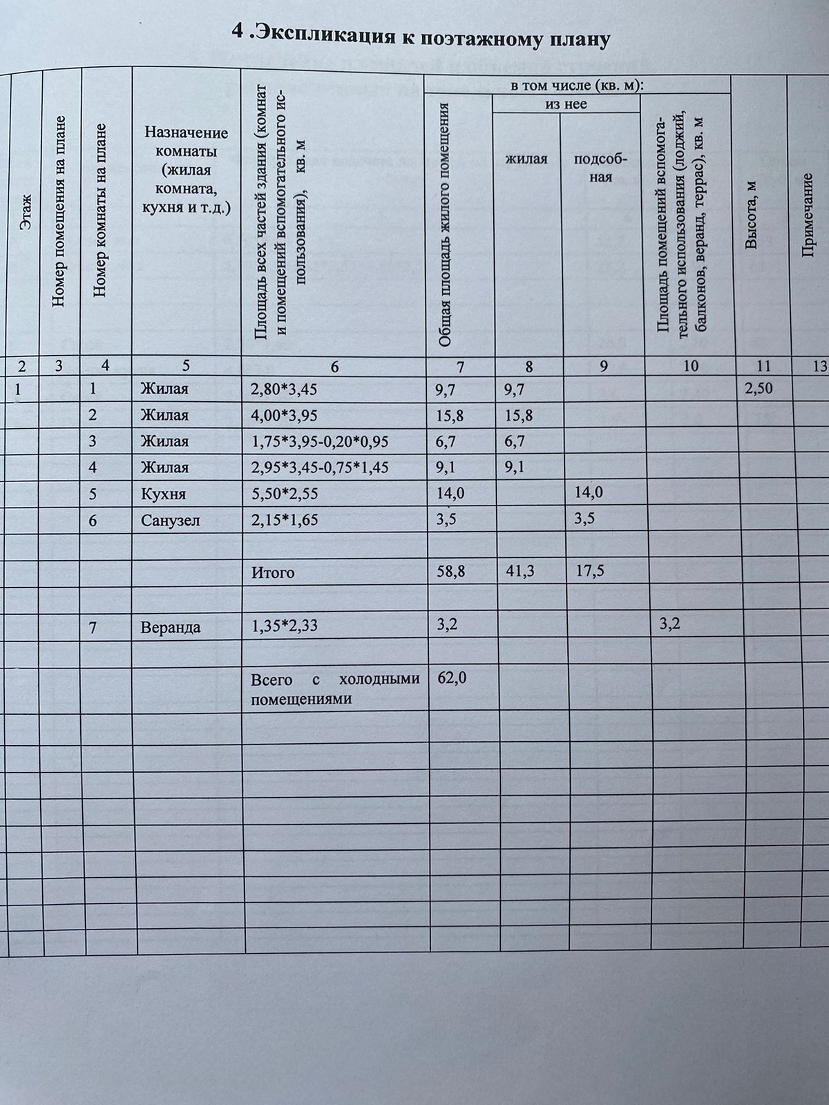 Общая площадь 58.8 м2