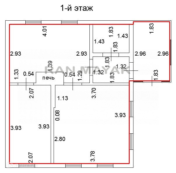 Общая площадь 39.9 м2