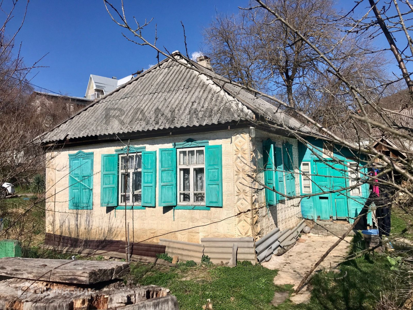 В доме косметический ремонт требует рук и внимания. Электричество заведено, вода центральная, Газ по меже участка.