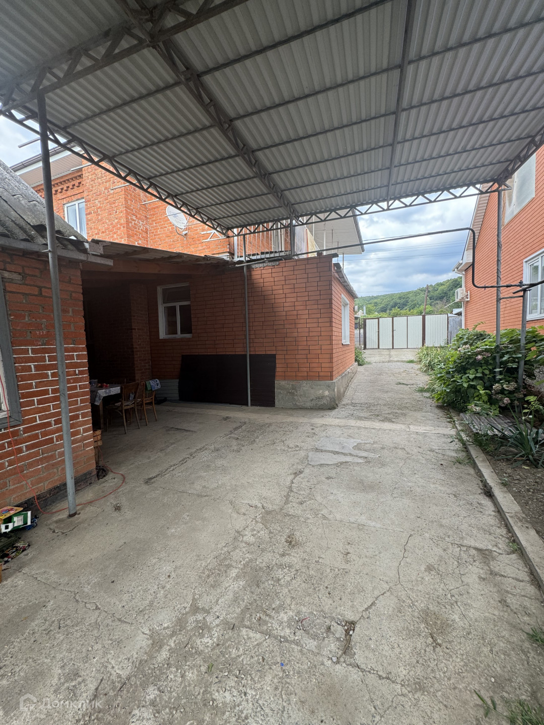 Во дворе большой навес, кирпичная летняя кухня(проведен газ и вода).