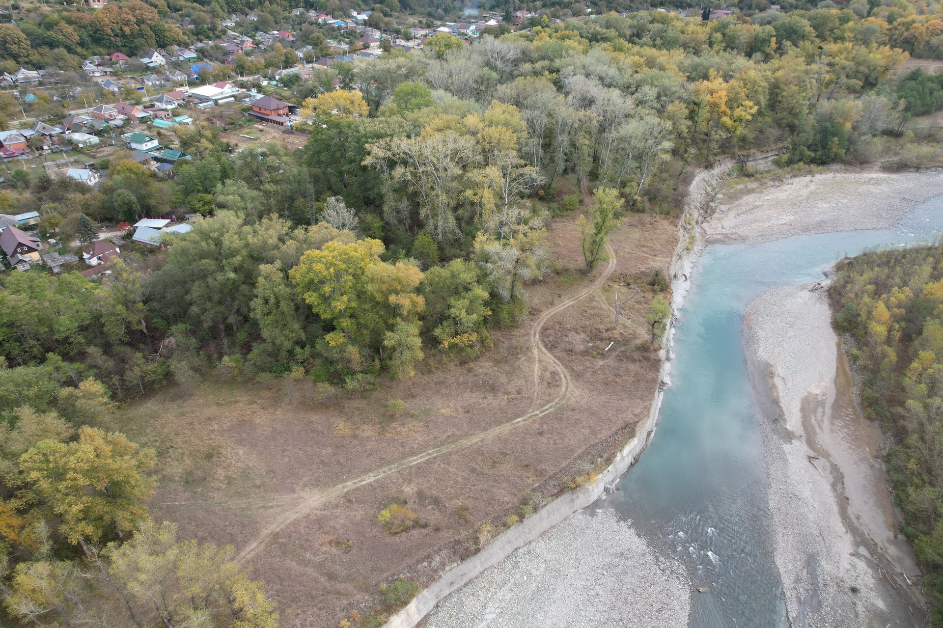 Участок расположен на берегу реки Белая в лесу (не заросший)