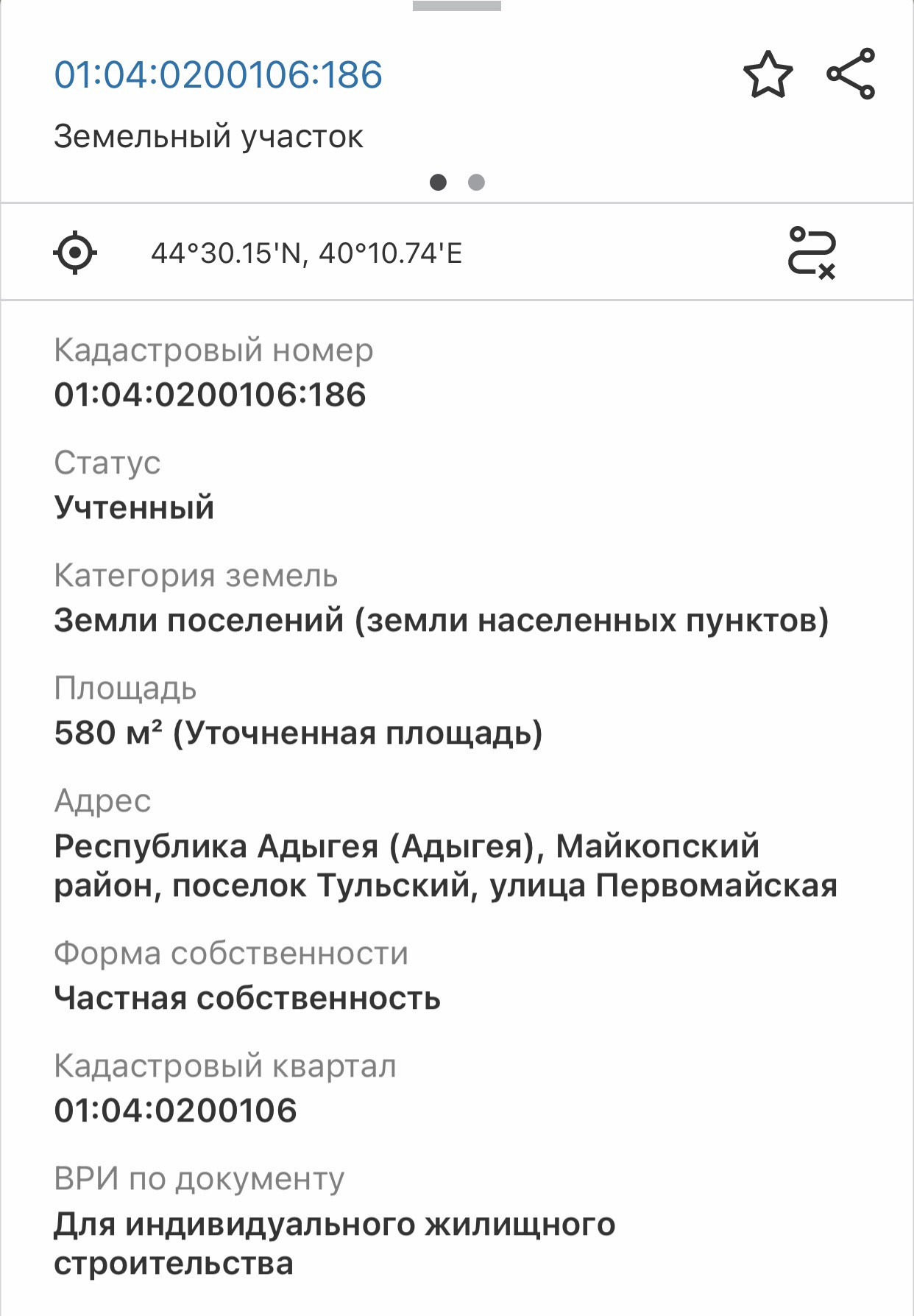 Также есть возможность приобрести соседний участок площадью 600 кв.м с домиком 40 кв.м. Кадастровый номер 01:04:0200106:185.