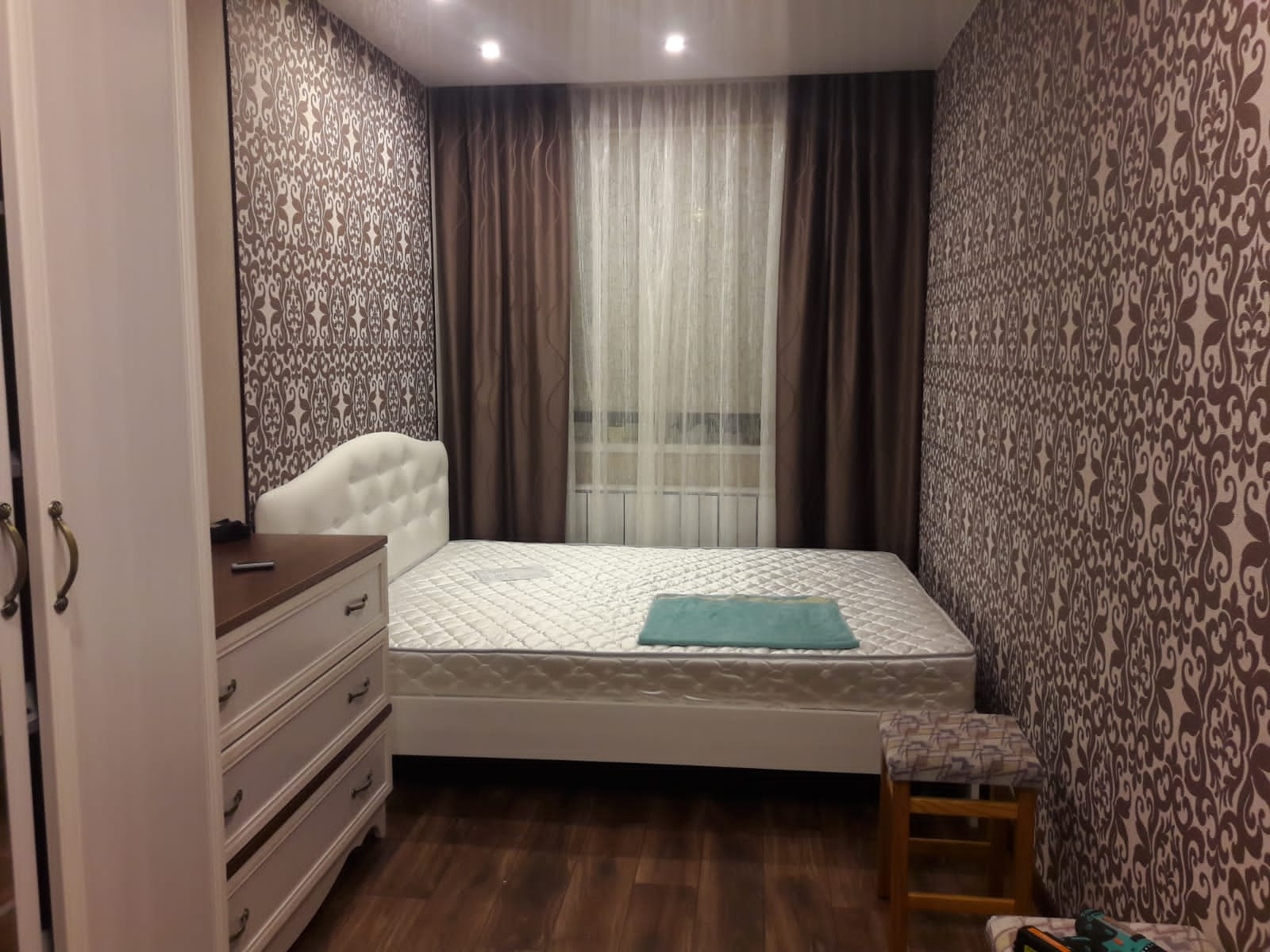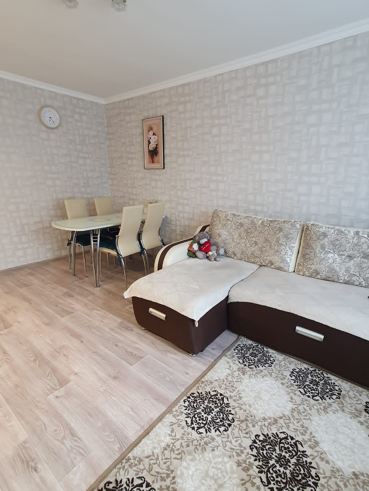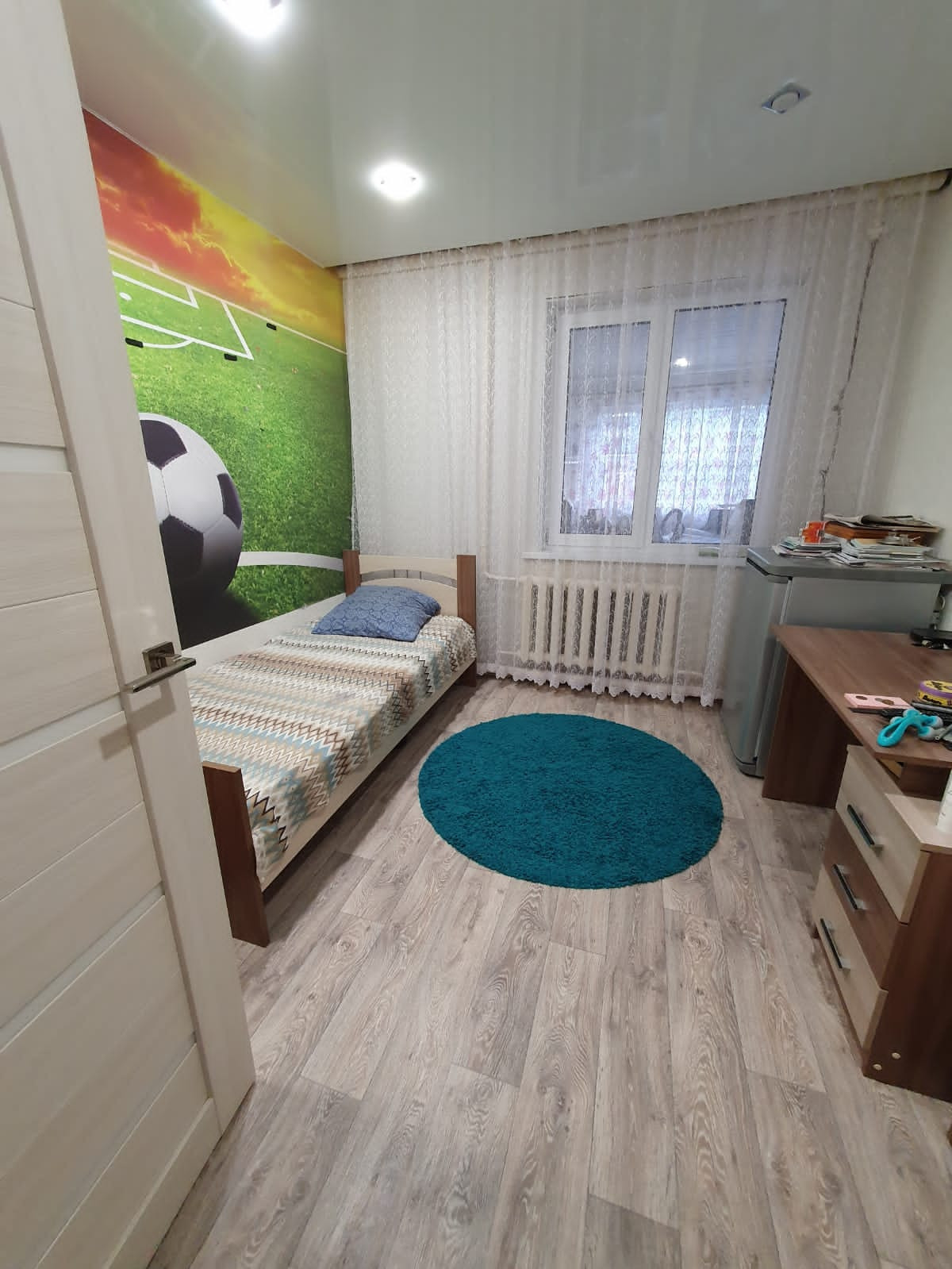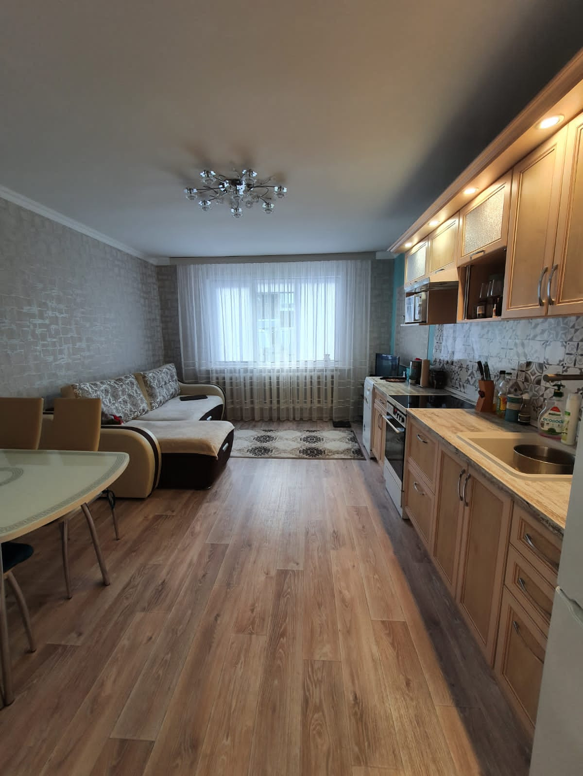 56,7м², 50 лет газеты Советская Эвенкия,  д.15, остаётся вся мебель кроме кухонного стола со стульями и комода с коридора, все потолки, полы и стены ровные, в комнатах натяжные потолки,  лампы на пульте, 4400 не большой торг.