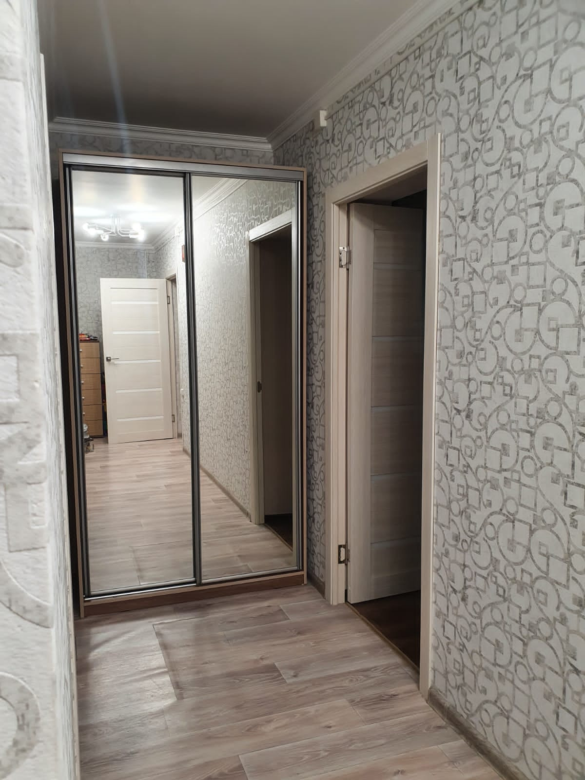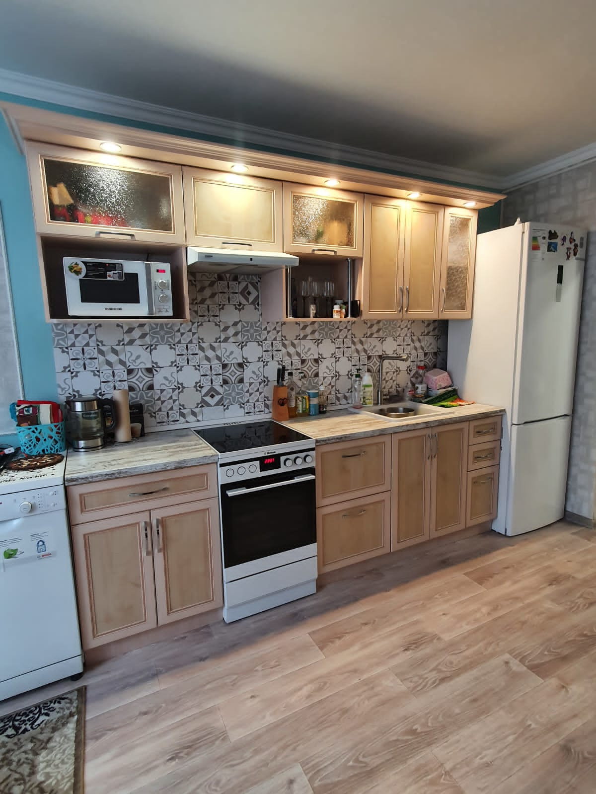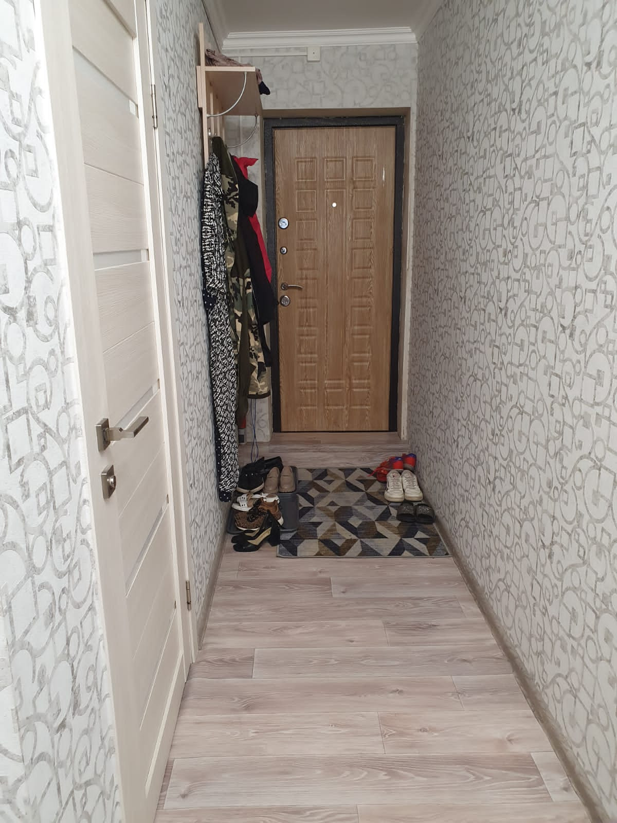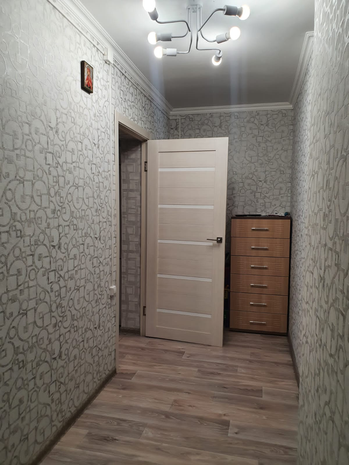 56,7м², 50 лет газеты Советская Эвенкия,  д.15, остаётся вся мебель кроме кухонного стола со стульями и комода с коридора, все потолки, полы и стены ровные, в комнатах натяжные потолки,  лампы на пульте, 4400 не большой торг.