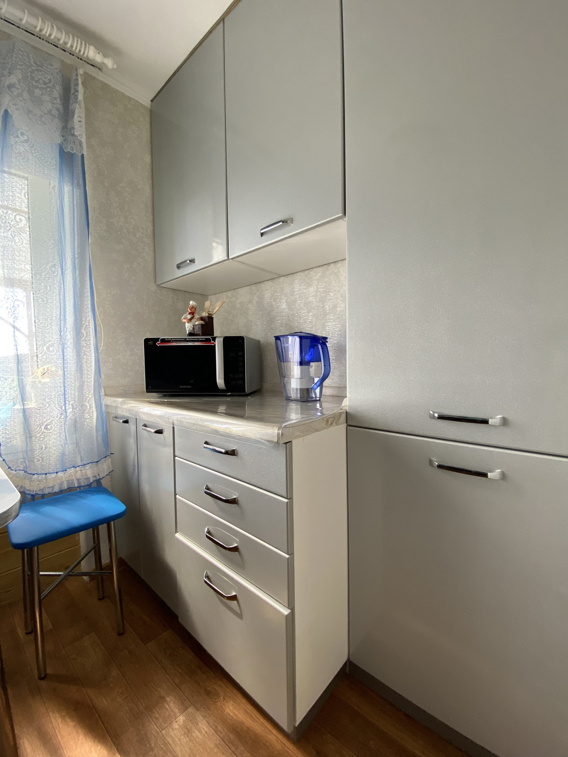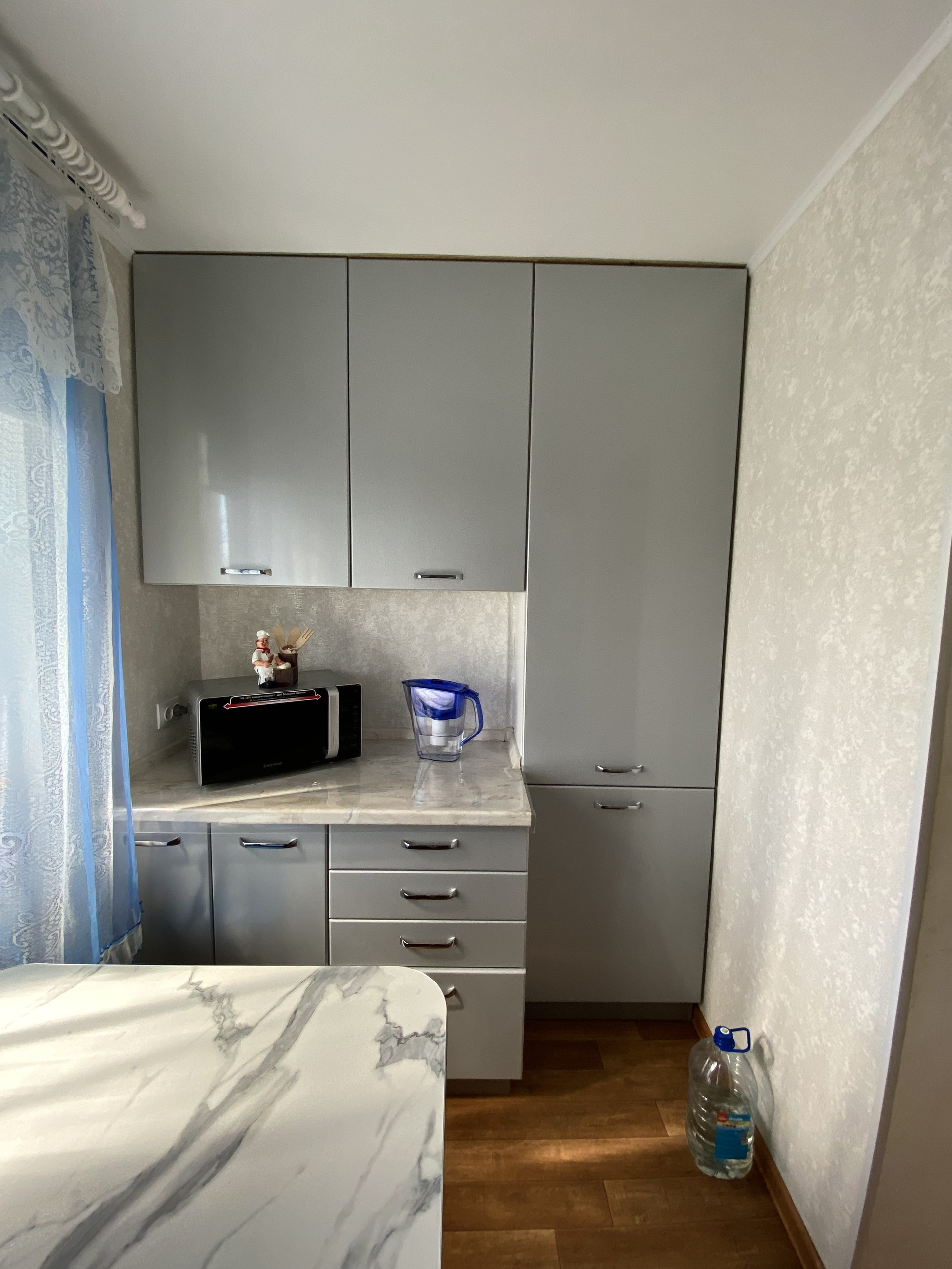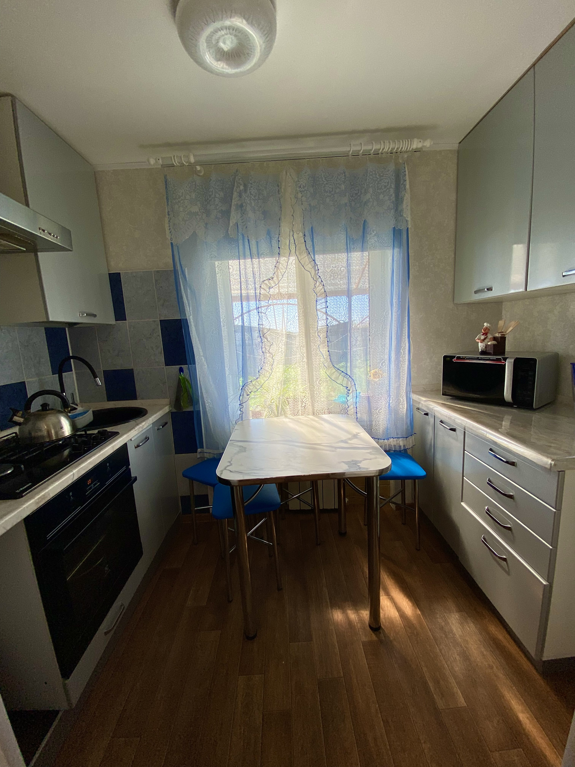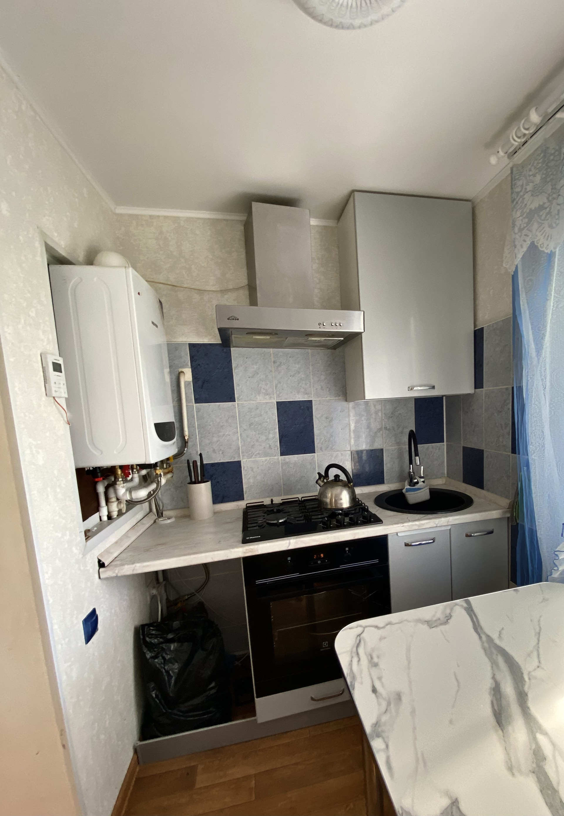 Выполнен качественный капитальный ремонт , заходи и живи! Поменена вся проводка, сантехника, новый котел , колонка , новая сливная яма . Натяжные потолки , пластиковые окна,  установлены хорошие двери , лежит качественный линолеум . Выровнены стены . Остается встроенная кухня сделанная под заказ  год назад ( стоимость 120.000 ). На кухне оставлено место под посудомойку( на фото видно). Делали все для себя !