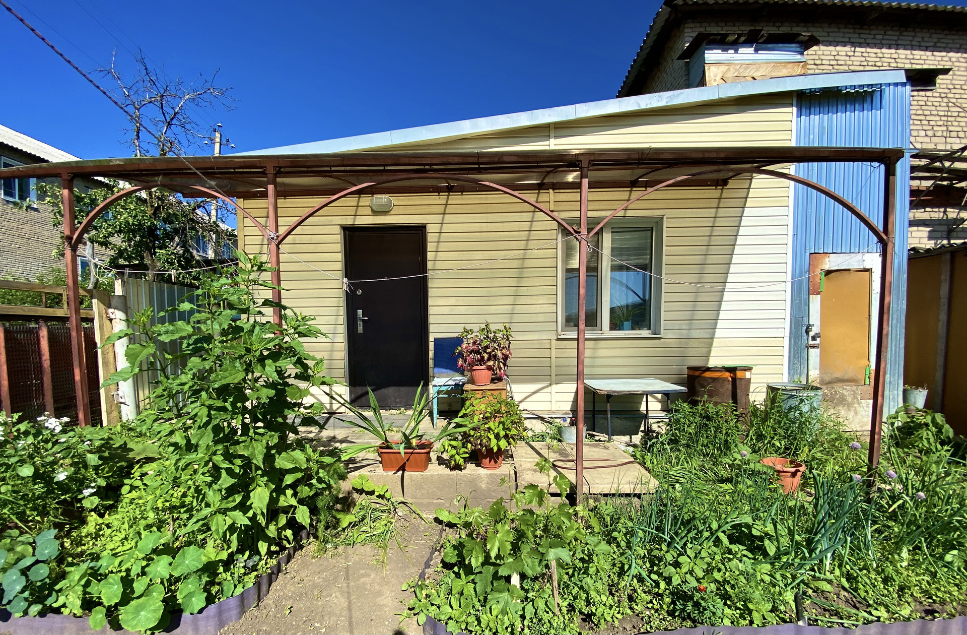Разработан огород , есть плодоносящие кустарники, виноград , клубника . Во дворе есть погреб и кладовка.