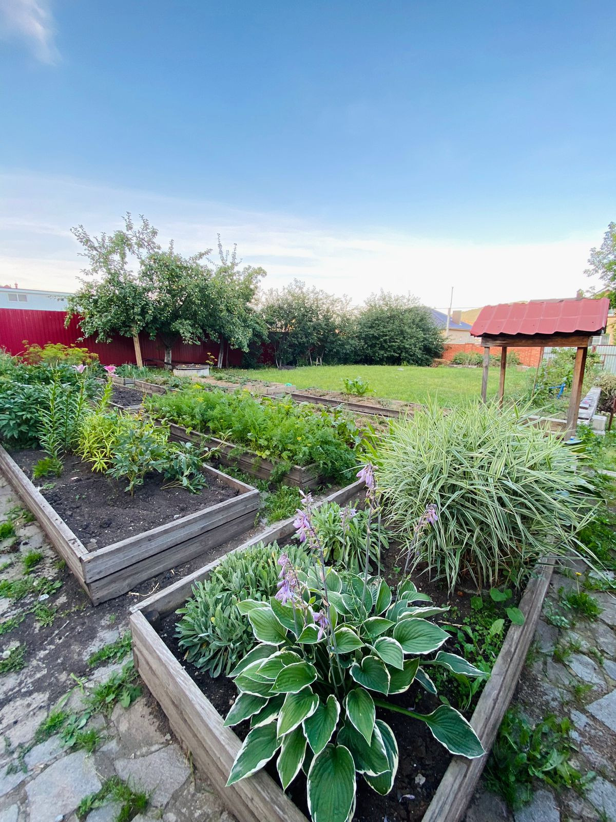 Участок ровный, правильной формы, огражден забором, имеются плодово ягодные деревья, высокие грядки, теплица, газон. Въезд с 2х сторон. Двор выложен плиткой.