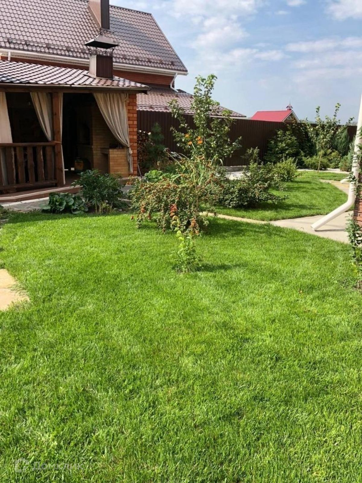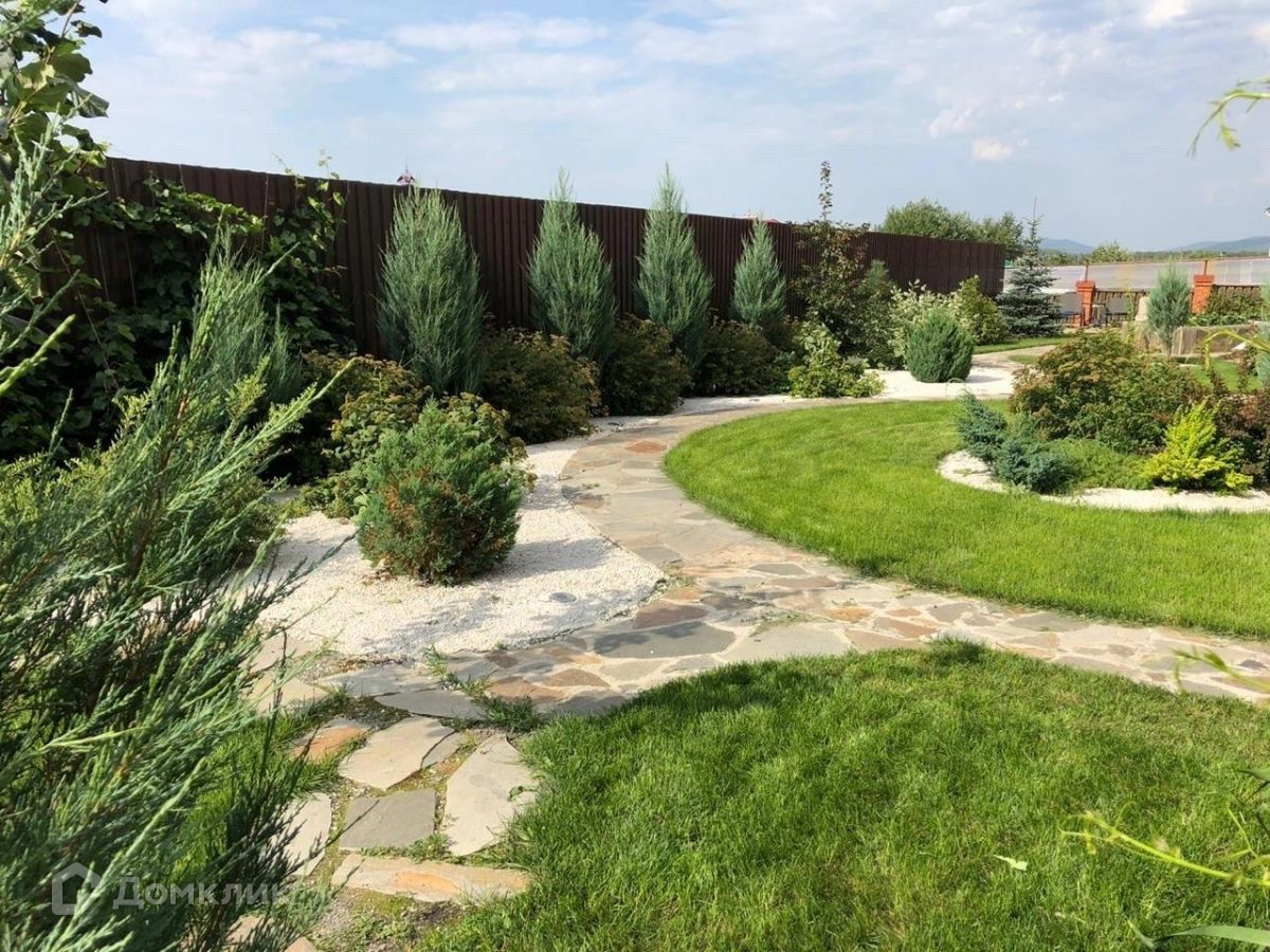 Придомовая территория оснащена парковкой на пять автомобилей, беседка с мангальной зоной, бассейн с подогревом, бильярдная комната сделает отдых гостей незабываемым. Участок облагорожен по последним веяниям ландшафтного дизайна, поэтому выглядит красиво и эстетично.