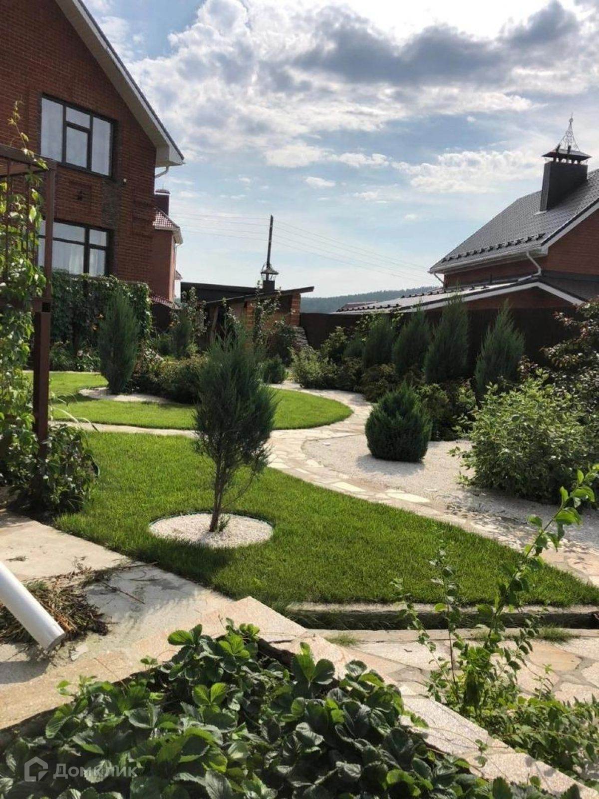 Оба коттеджа меблированы, кухонные зоны оснащены всей необходимой техникой. Территория участка огорожена забором из плитняка, въезд на парковку через автоматические ворота.
