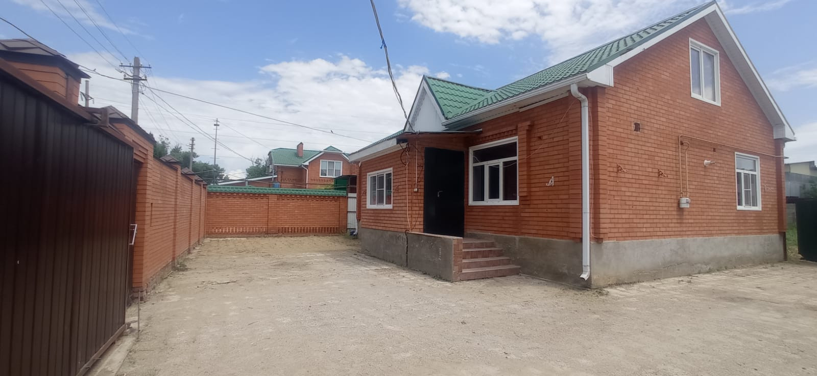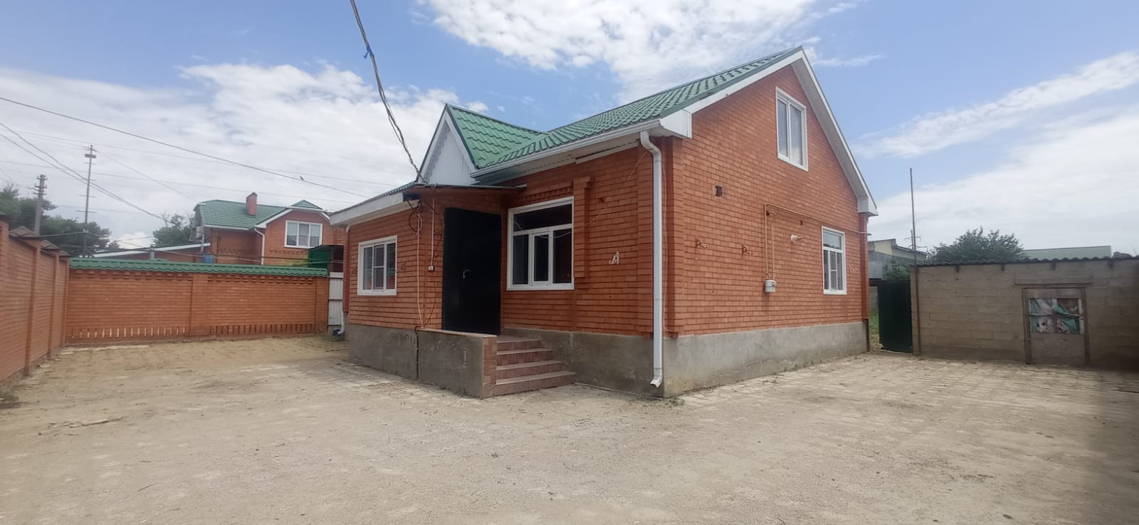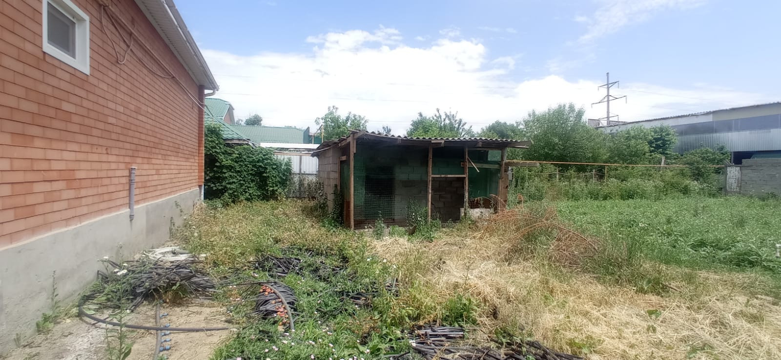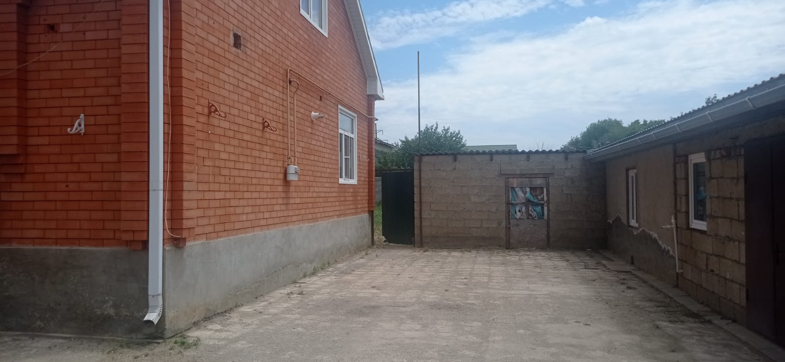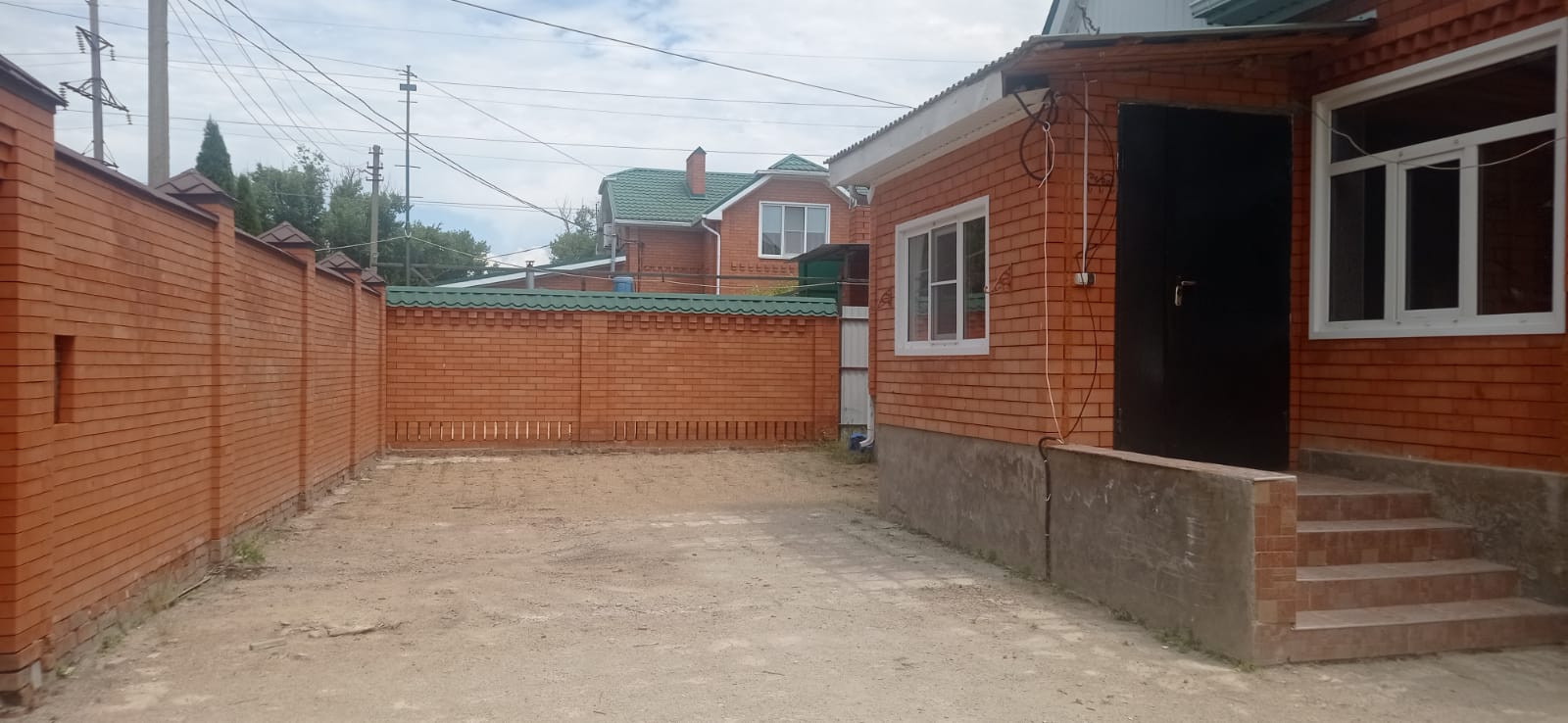 Двор - бетонированный, имеется место под строительство, можно поставить теплицы, проведен капельно- орошительный полив.