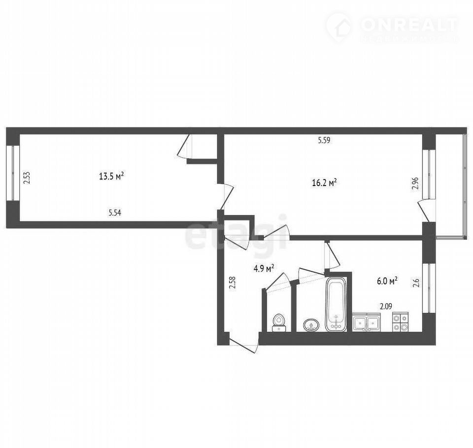 Общая площадь 44.1 м2