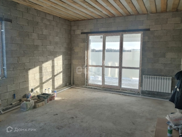 Внутри дома выполнена стяжка, построены все перегородки, разводка воды и канализации. Высота потолков
