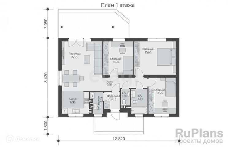 с выходом на крытую террасу.