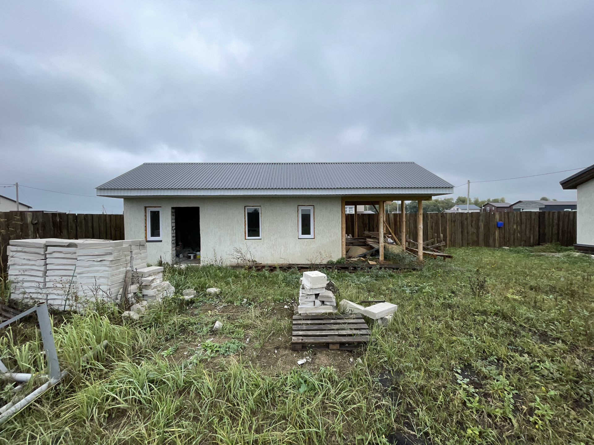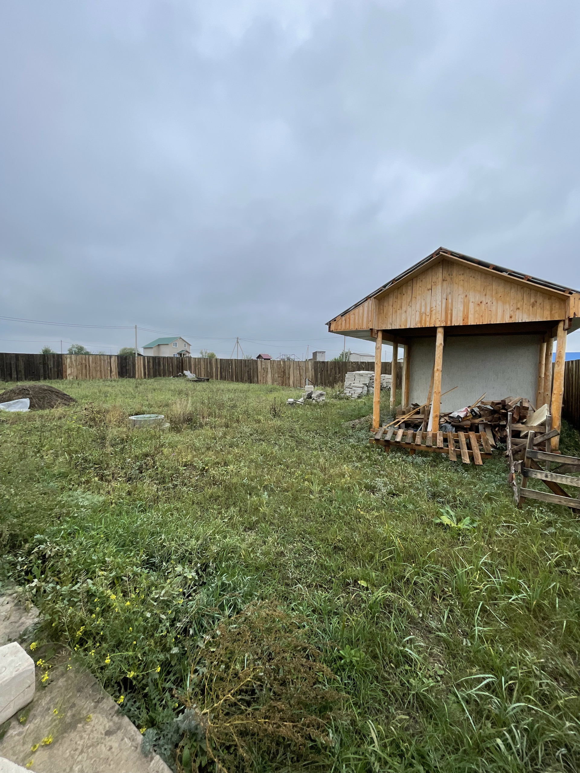 Построена баня, навес -беседка, без отделки.