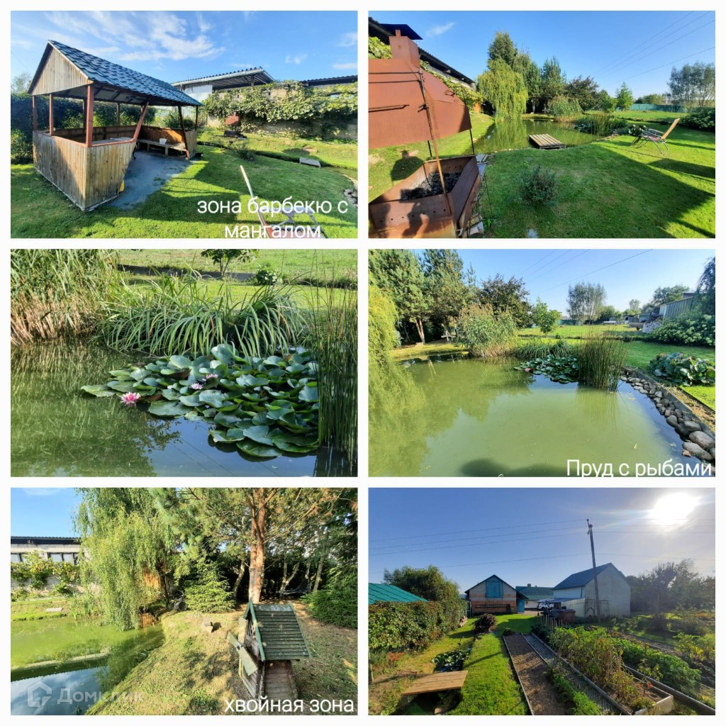 Дом- в 2 этажа, баня -в 2 этажа, гараж на 1 авто, надворные постройки для подсобного хозяйства, авто- мастерская (2 этажа), помещение для скота и птицы (коровник,клетки для циплят, курятник) на 2 этаже большой сеновал), просторный погреб, а так же -уличная беседка с зоной барбекю, свой лес ( есть грибы), облагороженный пруд с рыбками , 3 теплицы, большой огород, птичий двор, сад с плодовыми деревьями, кустарники, и множество грядок и цветочные клумбы, декоративные туи.