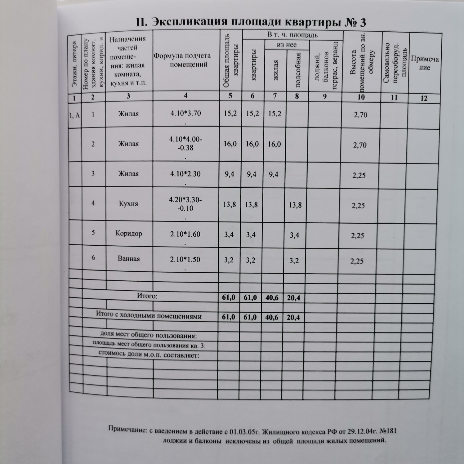 Общая площадь 61 м2