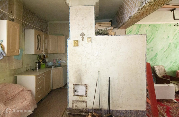 В доме одна большая комната+кухня.