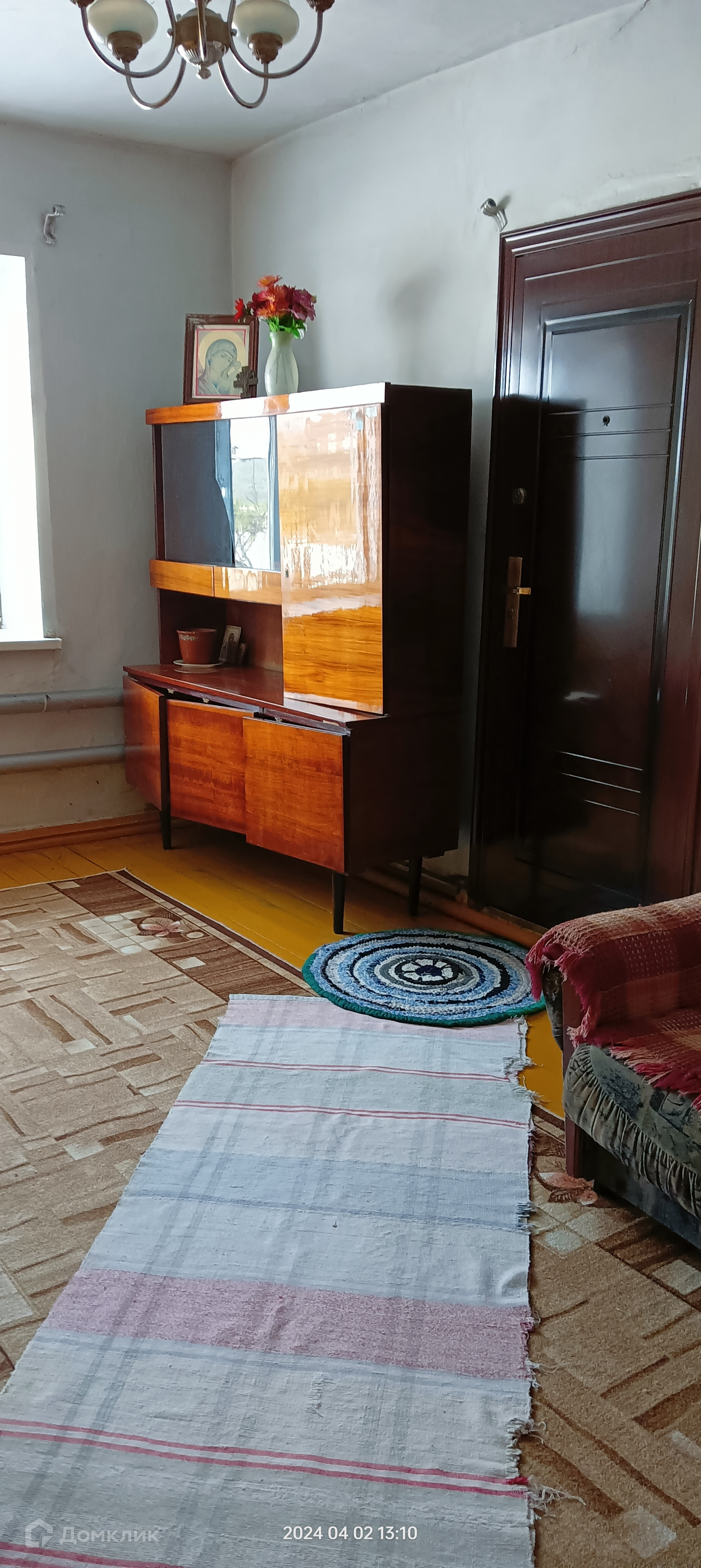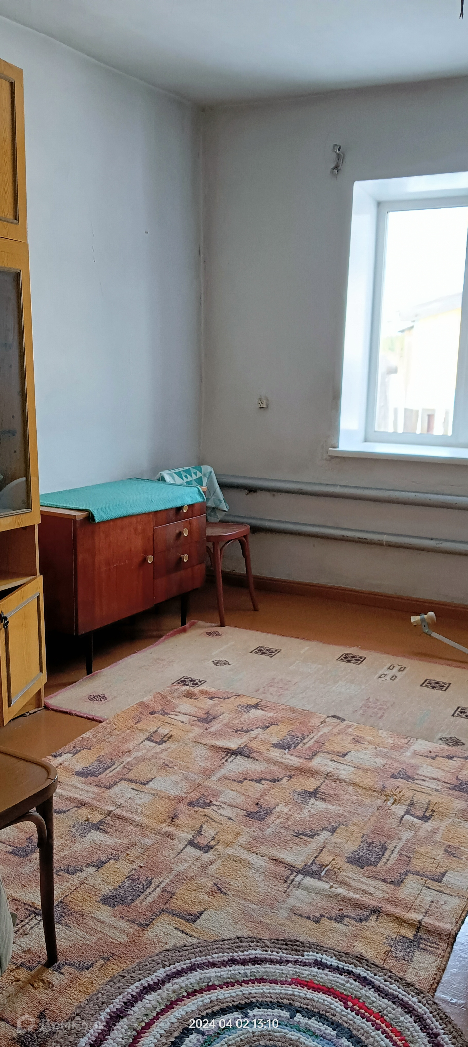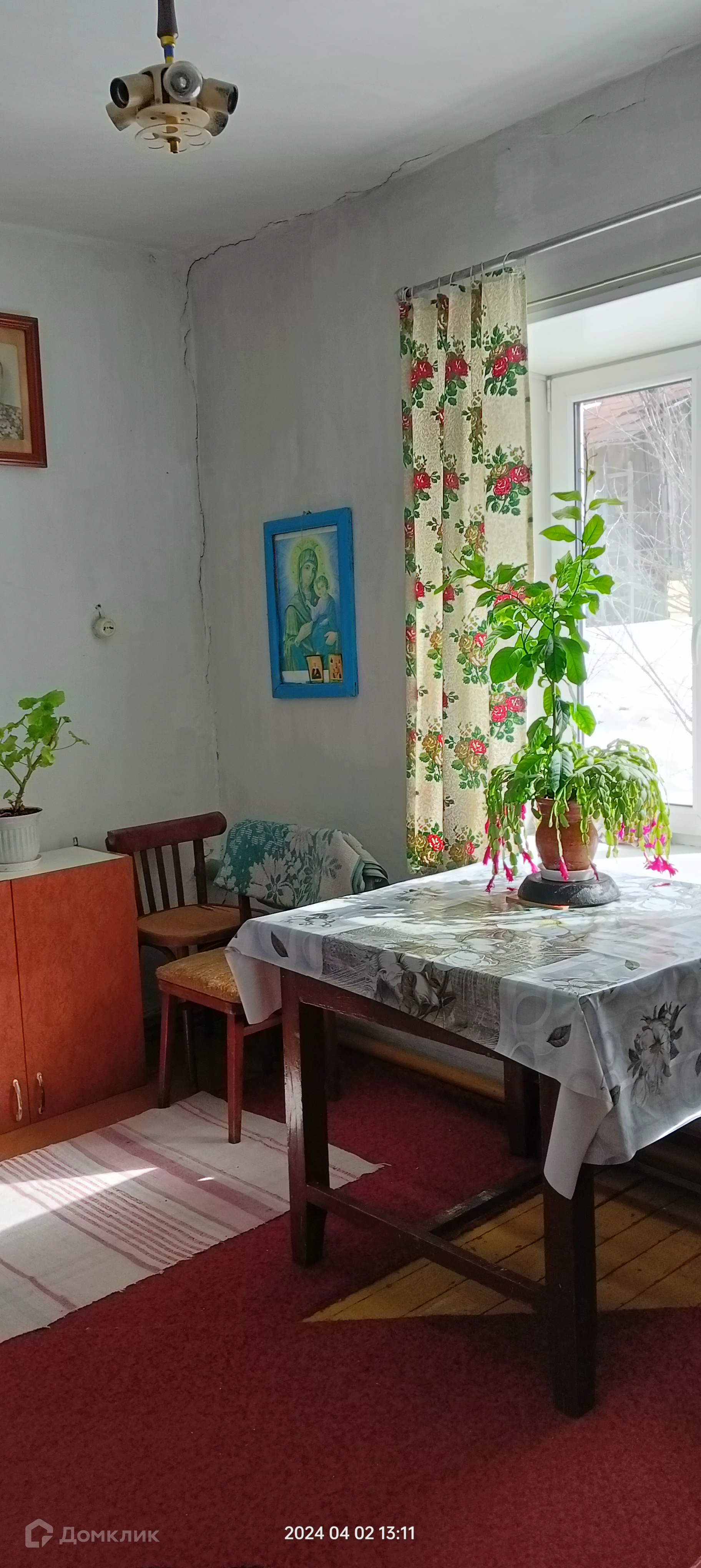 Дом построен  из шлакоблока, площадью 50,5 кв.м.. Комнат в доме 3, все раздельно. Отопление печное ( трубы по всему дому), вода центральная, выгребная яма. Установлены пластиковые окна, везде кроме туалета, пол деревянный. Есть подполье, для хранения овощей, и заготовок.