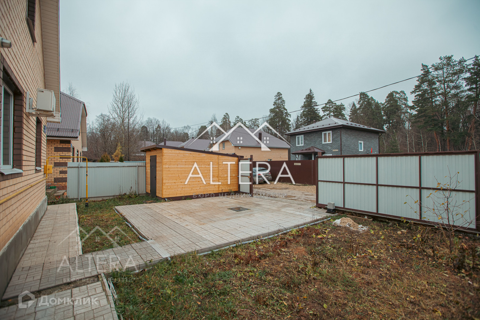 Дом огорожен забором металлопрофиль. Фундамент: плита бетон цельная 1м, со сваями, шаг между сваями 1метр. Отмостка вокруг дома.