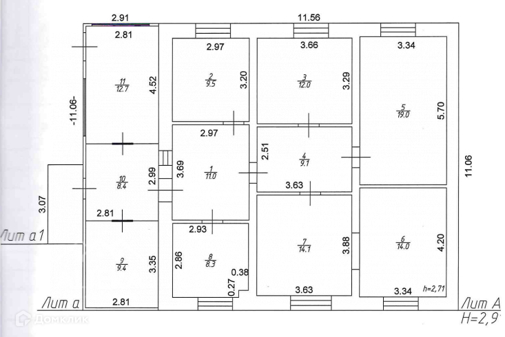 кухня гостиная, спальня, детская, кабинет, санузел, коридор и прихожая.