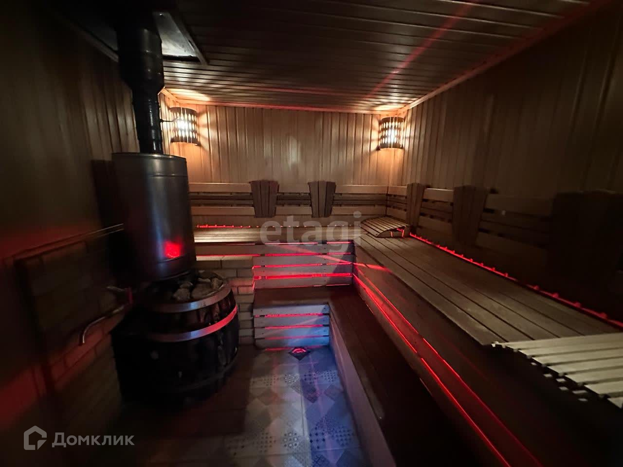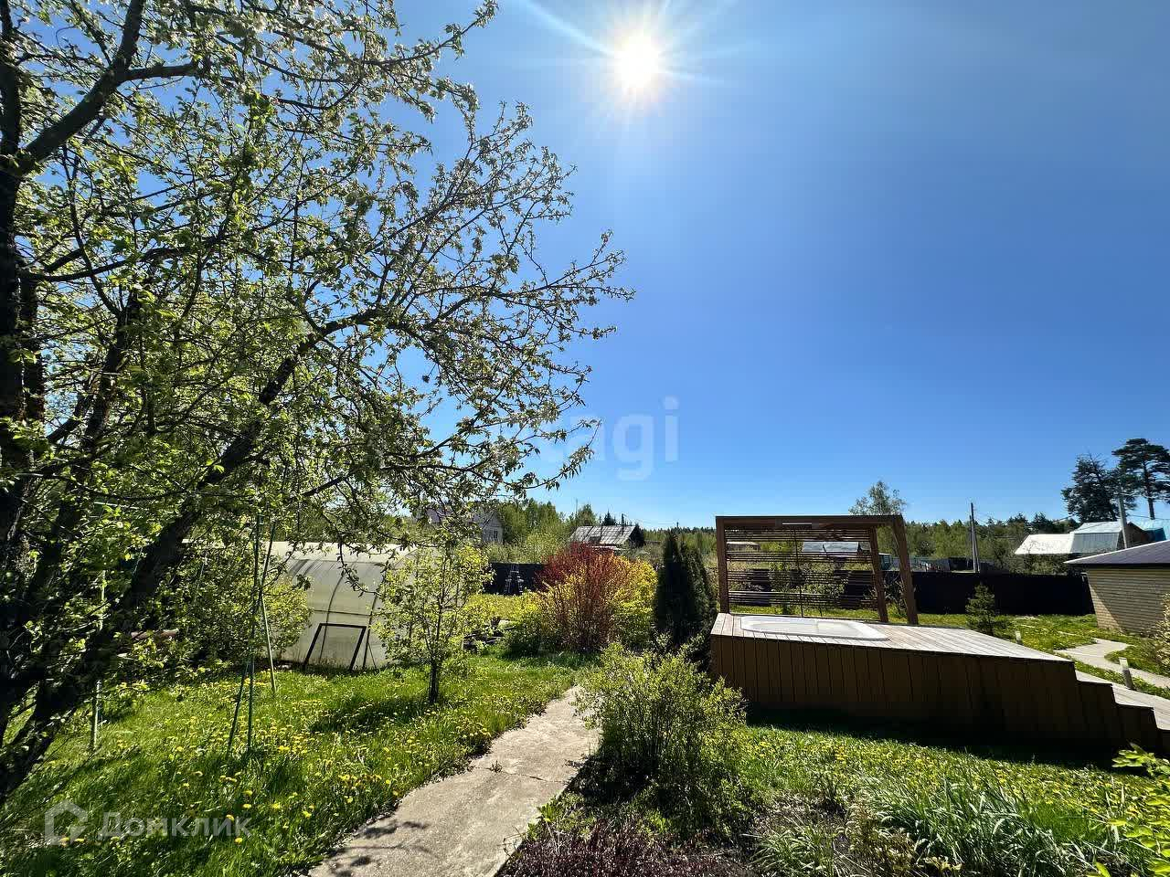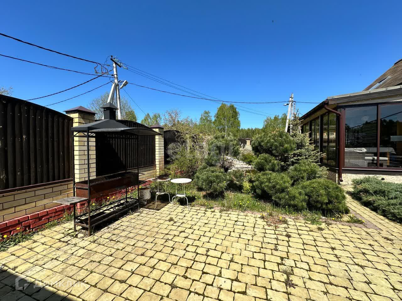 Крыша дома и бани сделана из мягкой кровли поэтому летом не жарко. Во дворе реализован ландшафтный дизайн - пруд с водопадом и подсветкой. В саду плодоносят яблони, виноград и многолетние цвета посажены. Установлен автополив.