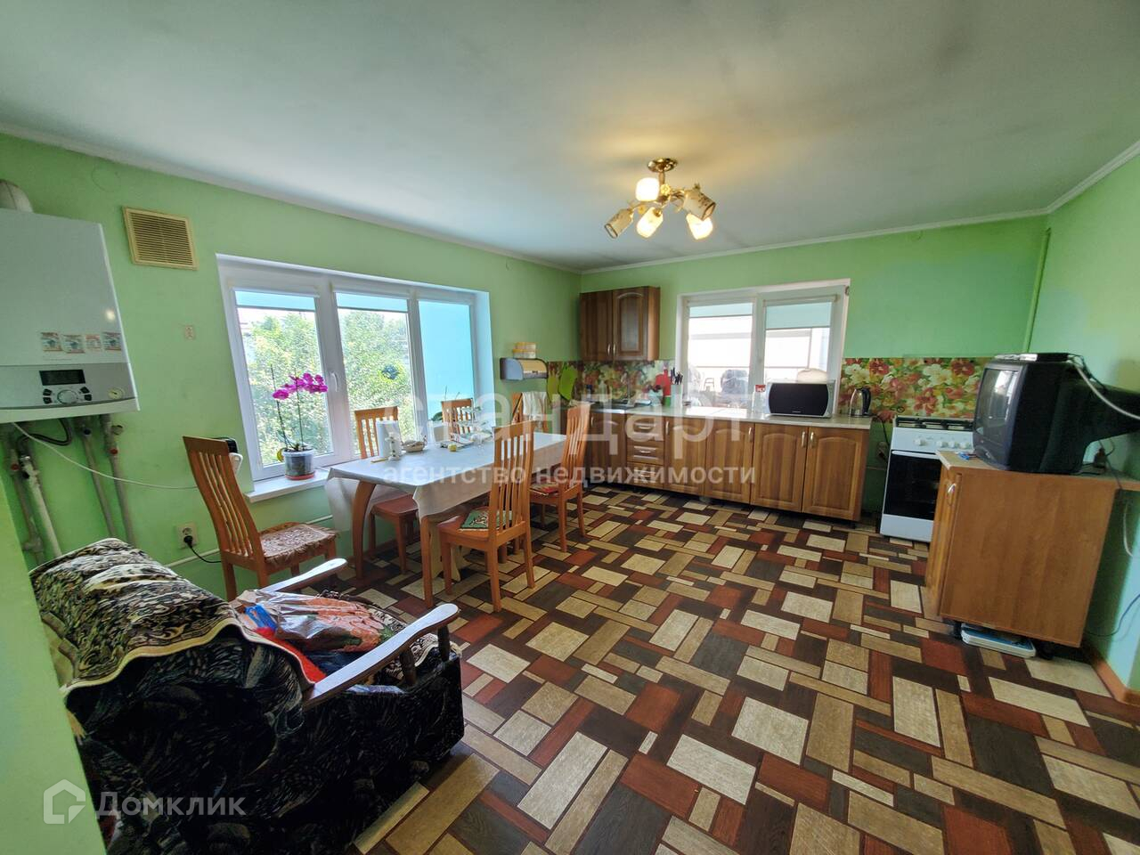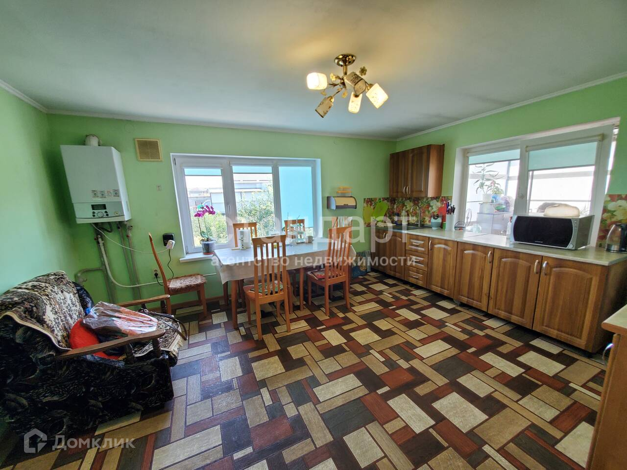 Продается отдельно стоящий дом площадью 99 м2 на земельном участке 16 соток.  Дом находится в тихом, уютном и экологически чистом районе, в шаговой доступности магазины, школа, садик, медицинский центр, почта.На входе в дом крытая терраса, Во дворе дома въезд для нескольких машин, летняя кухня, подвал, две капитальные теплицы, два мотоблока, хозпостройки. На территории облагороженный фруктовый сад и огород. В доме сделан качественный ремонт, новая крыша, современная система отопления: двухконтурный котел, теплые полы.Очень удобная планировка: кухня-гостиная с выходом во внутренний двор, холл, две спальные комнаты, раздельный санузел, прихожая. Под частью дома подвал, также есть возможность увеличения площади дома за счет эксплуатируемой мансарды.Дом и земельный участок находятся в собственности.