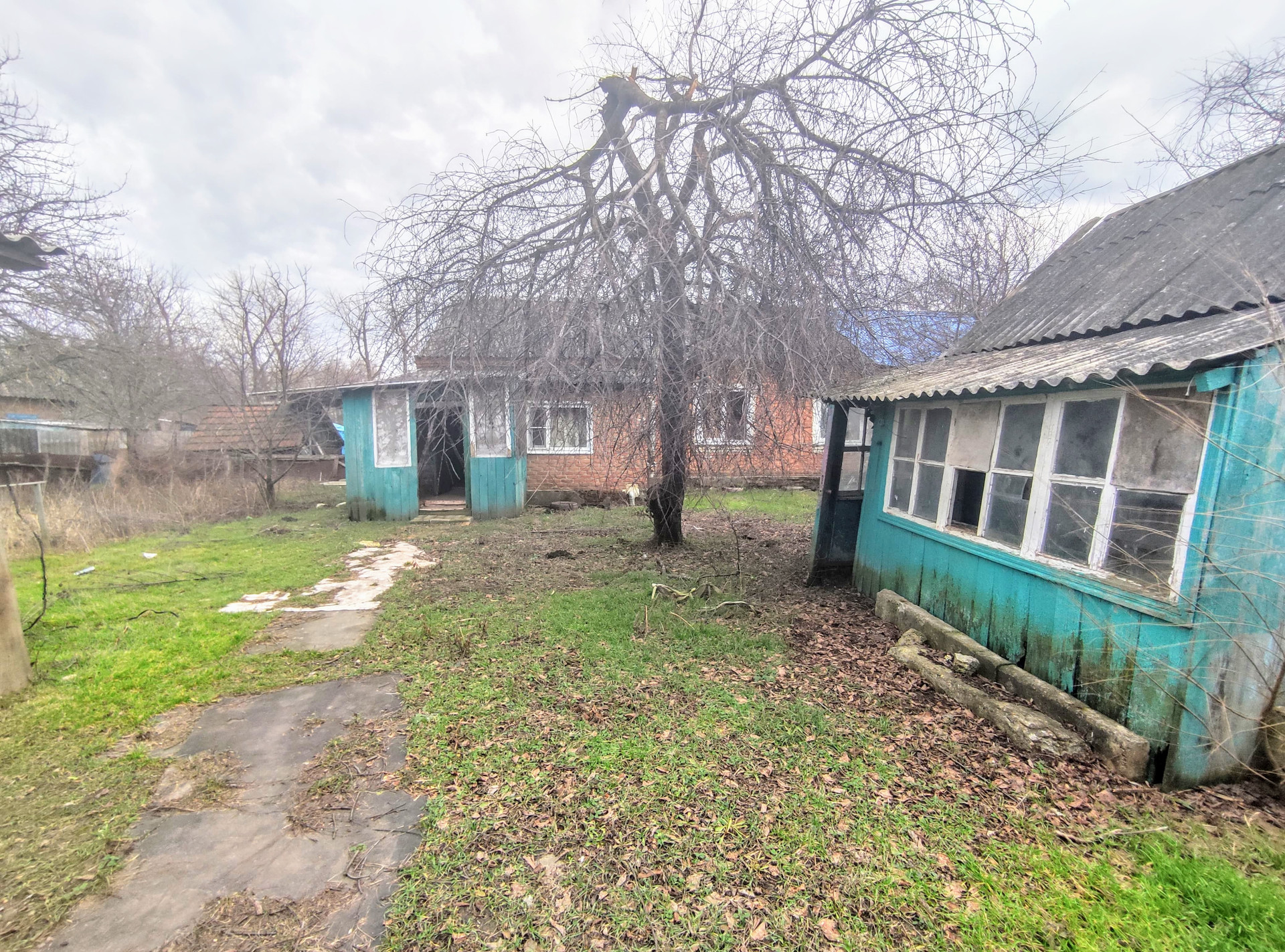 Хоз.постройки ветхие, под снос или капитальную реконструкцию: летняя кухня, сараи, в одном из сараев есть подвал. Канализация - септик. Земельный участок в бессрочном пользовании. Металлопрофильный забор, с широким фасадом. За двором есть место для стоянки автомобиля. Асфальтированная подъездная дорога.