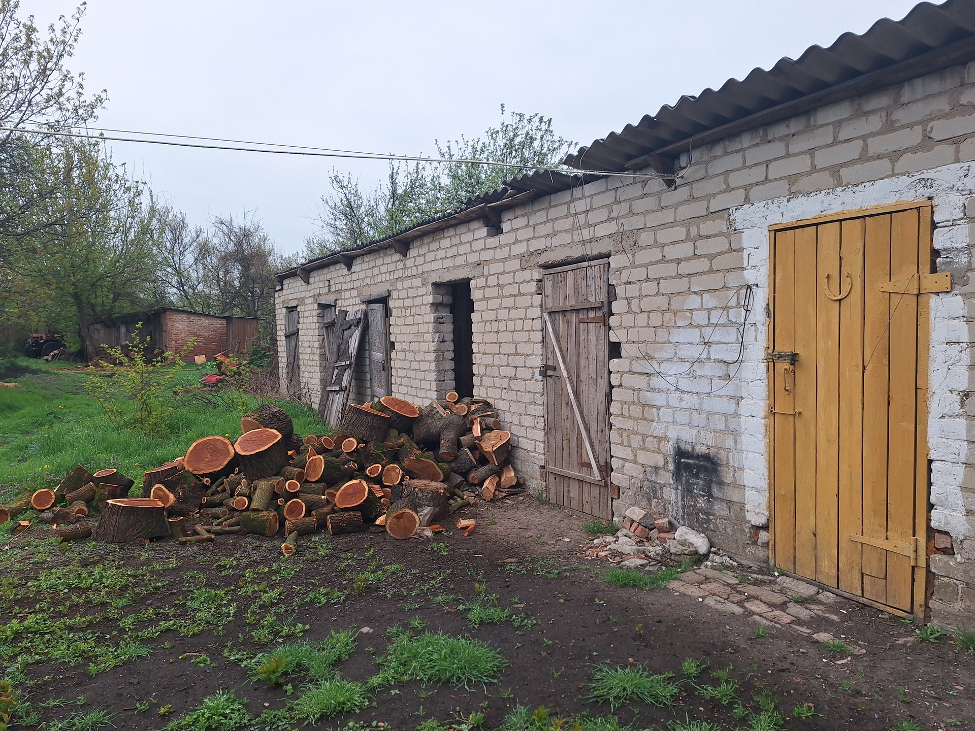 Имеется земельный участок и кирпичный сарай.
