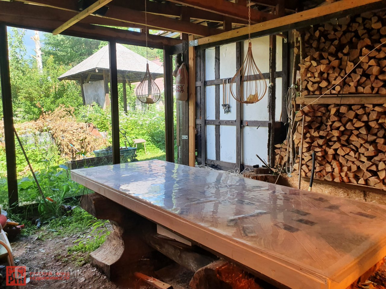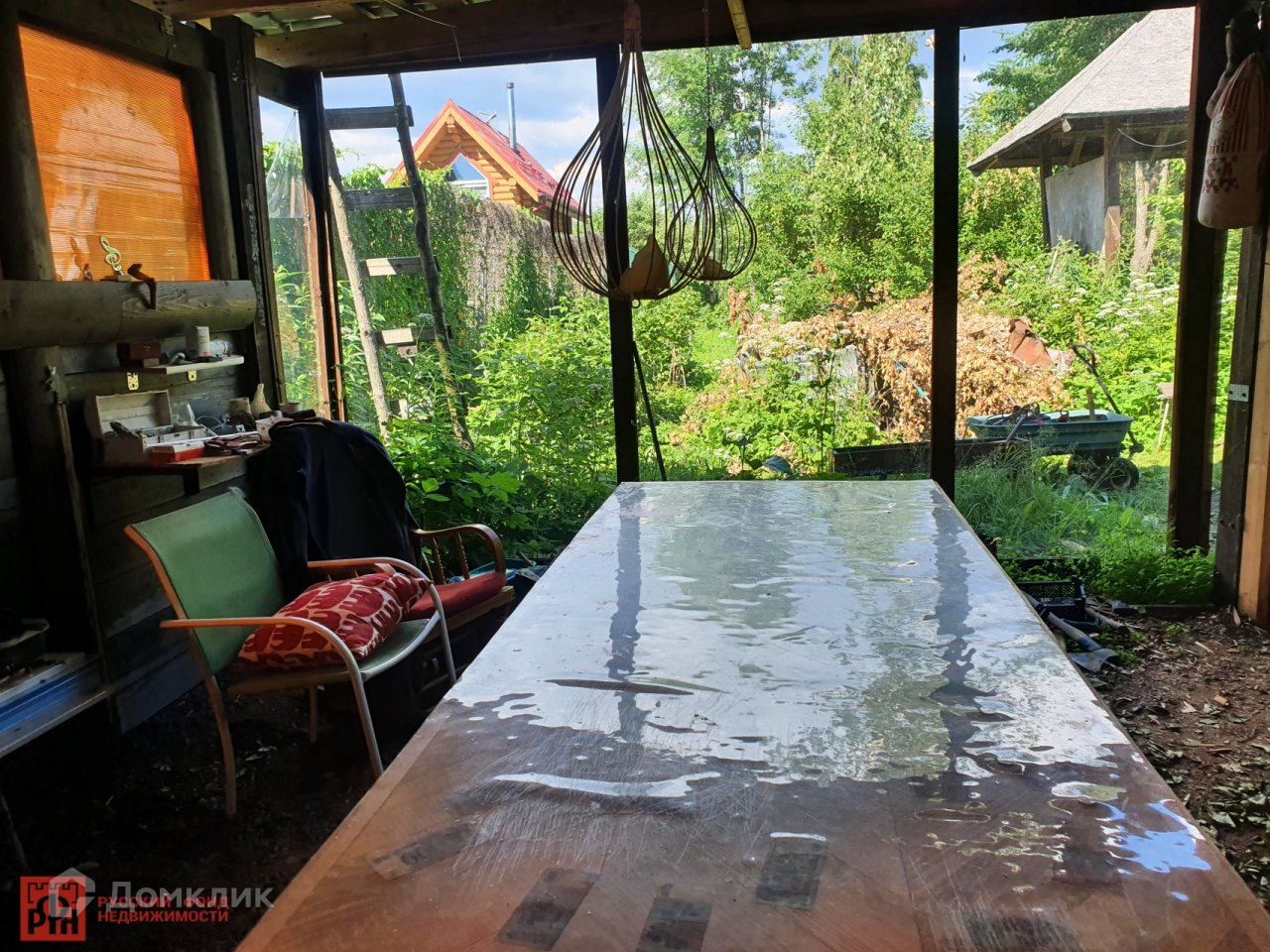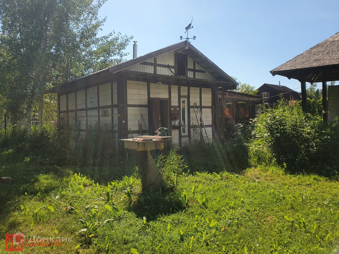 На участке  гостевой домик со всеми удобствами(свет,вода,канализация),можно проживать зимой,т к   утеплен и имеет теплый пол. В доме оборудована  кухня,комната ,совмещенный санузел с душевой и баня с печью!   Рядом расположена  закрытая беседка для уютных вечеров  с чаепитием и  барбекю.