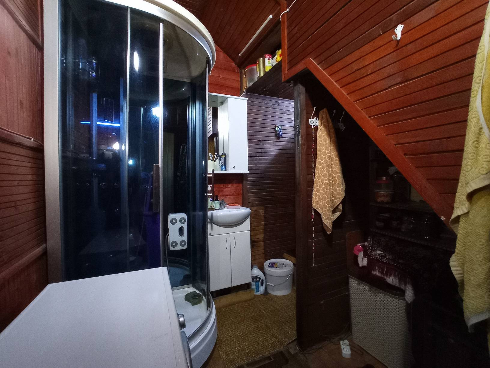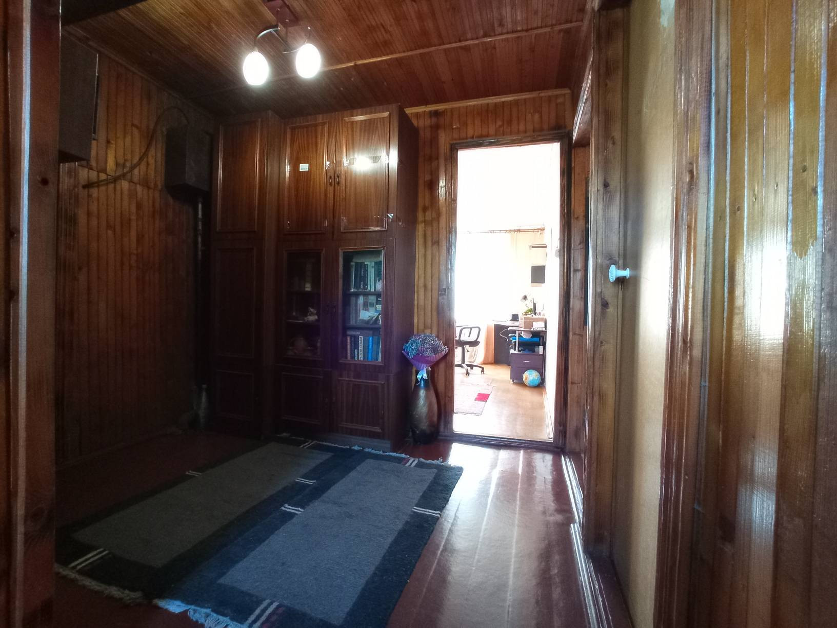 Всего в доме 5 просторных комнат 12+18+11+14+8 кв.м. (2 комнаты на 1-м этаже и 3 комнаты на 2-м этаже), кухня, совмещенный санузел с душевой кабиной и летняя веранда. На окнах установлены стеклопакеты. В каждой комнате поклеены обои и положен линолеум.
