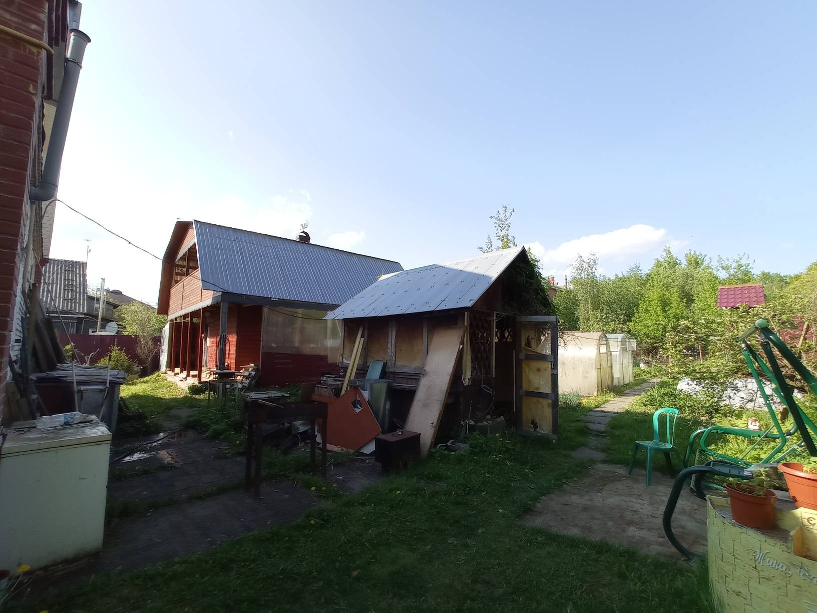 Ровный, правильной прямоугольной формы площадью почти 12 соток. Баня с гостевыми 2-комн апартаментами. Беседка для большой компании. Две большие теплицы, плодовые деревья и кустарники.