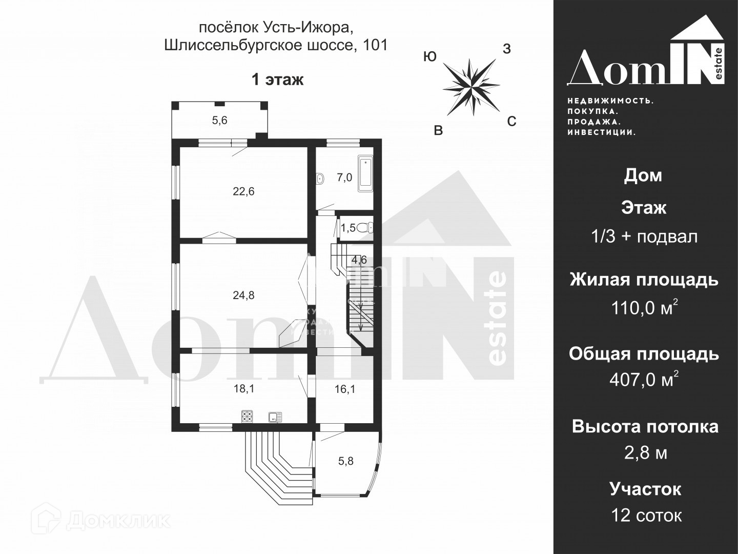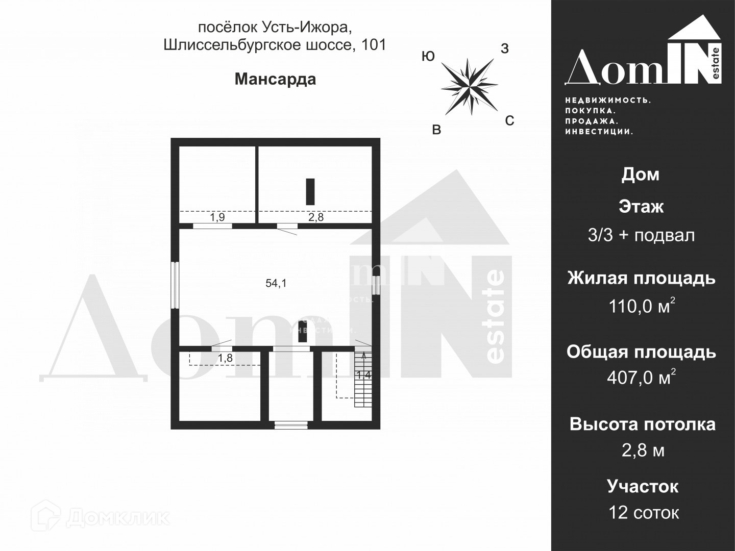 2-этажный дом, 407 м2, на продажу в посёлке Усть-Ижора, Шлиссельбургское шоссе, 101