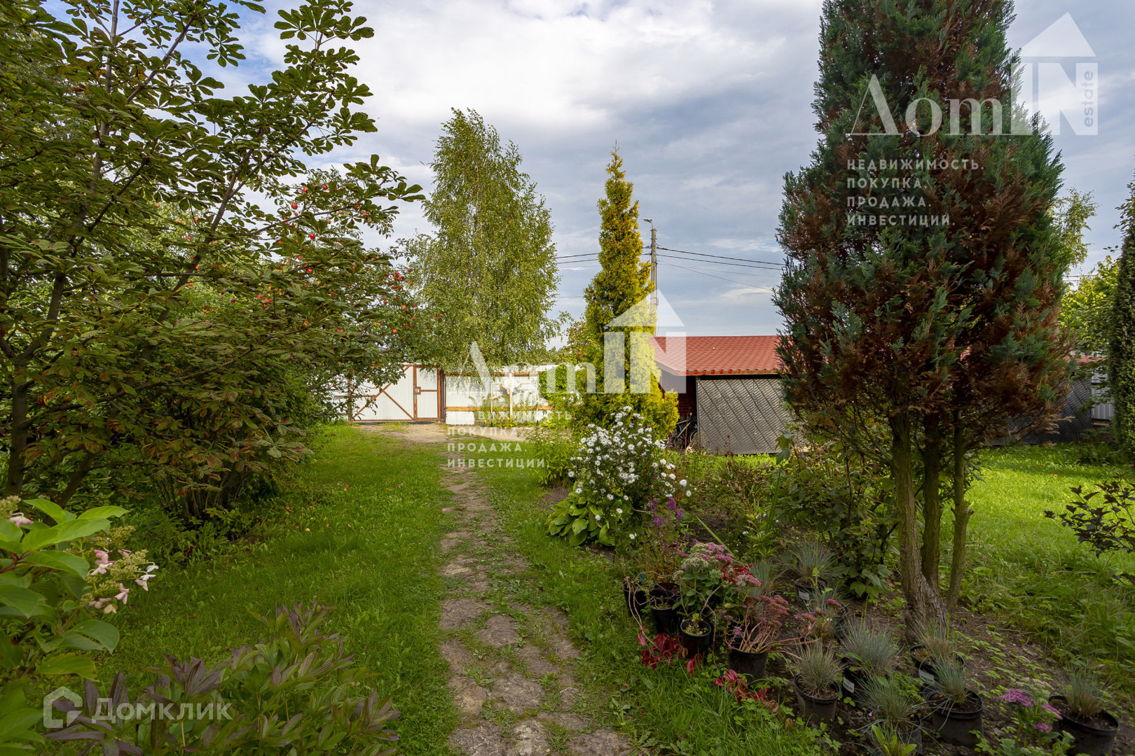 Прекрасный сад с декоративными растениями и яблонями .
