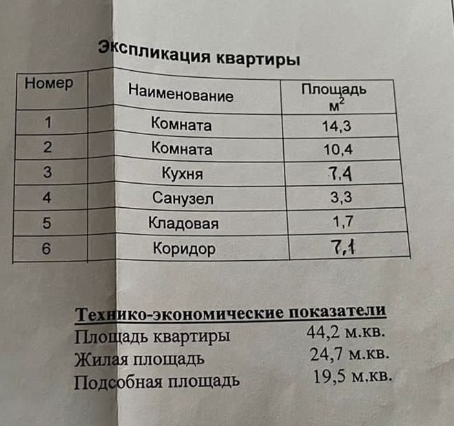 Общая площадь 44.2 м2