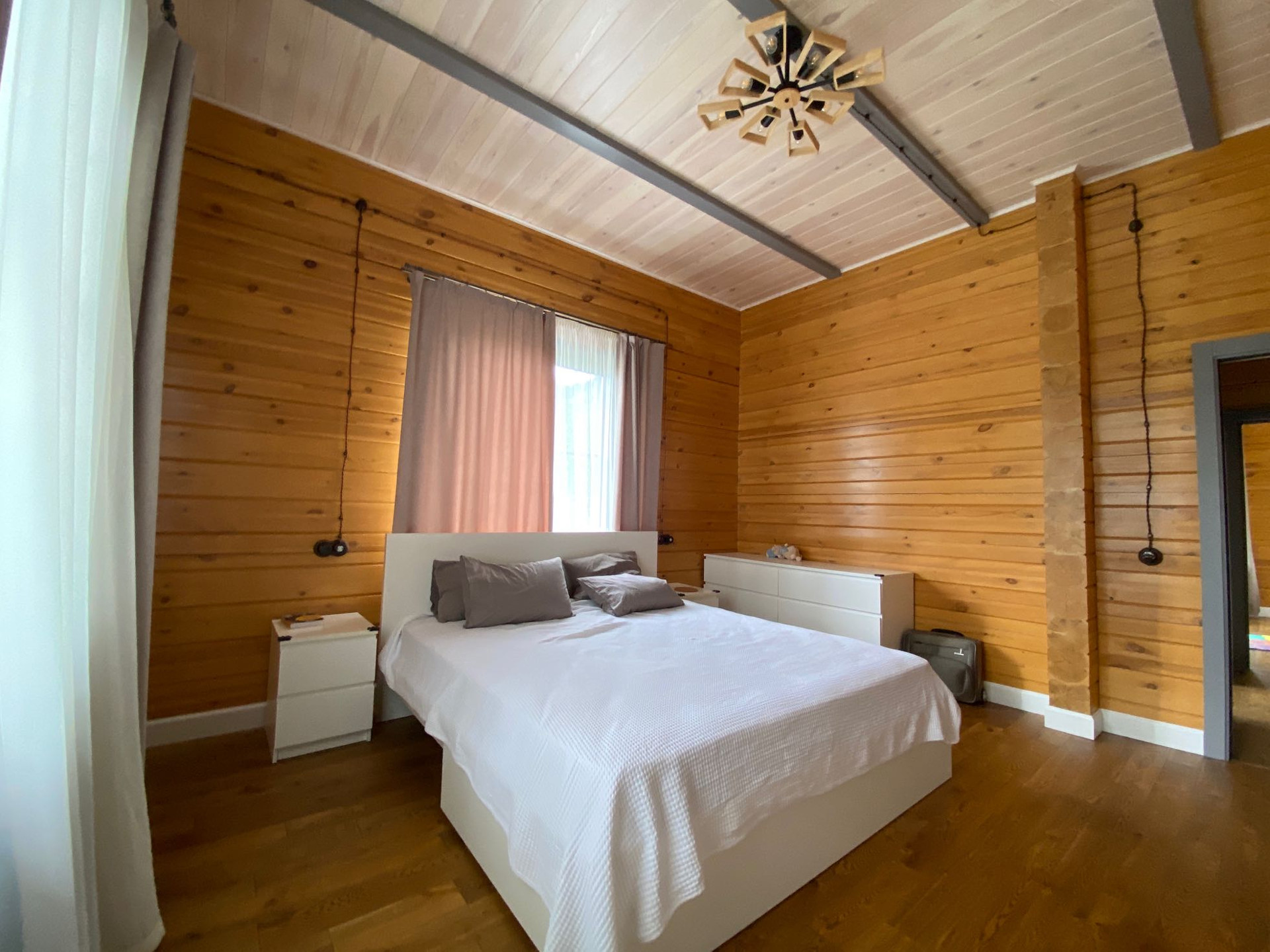 Второй этаж -реализована зона мансарды с эркерным окном. Большая часть мебели, межкомнатные двери, винтовая лестница изготавливались под заказ, по индивидуальному дизайн-проекту архитектора, заказанному в компании «Red Home». Дом оснащен современной встроенной и цифровой техникой. Проведен беспроводной интернет.