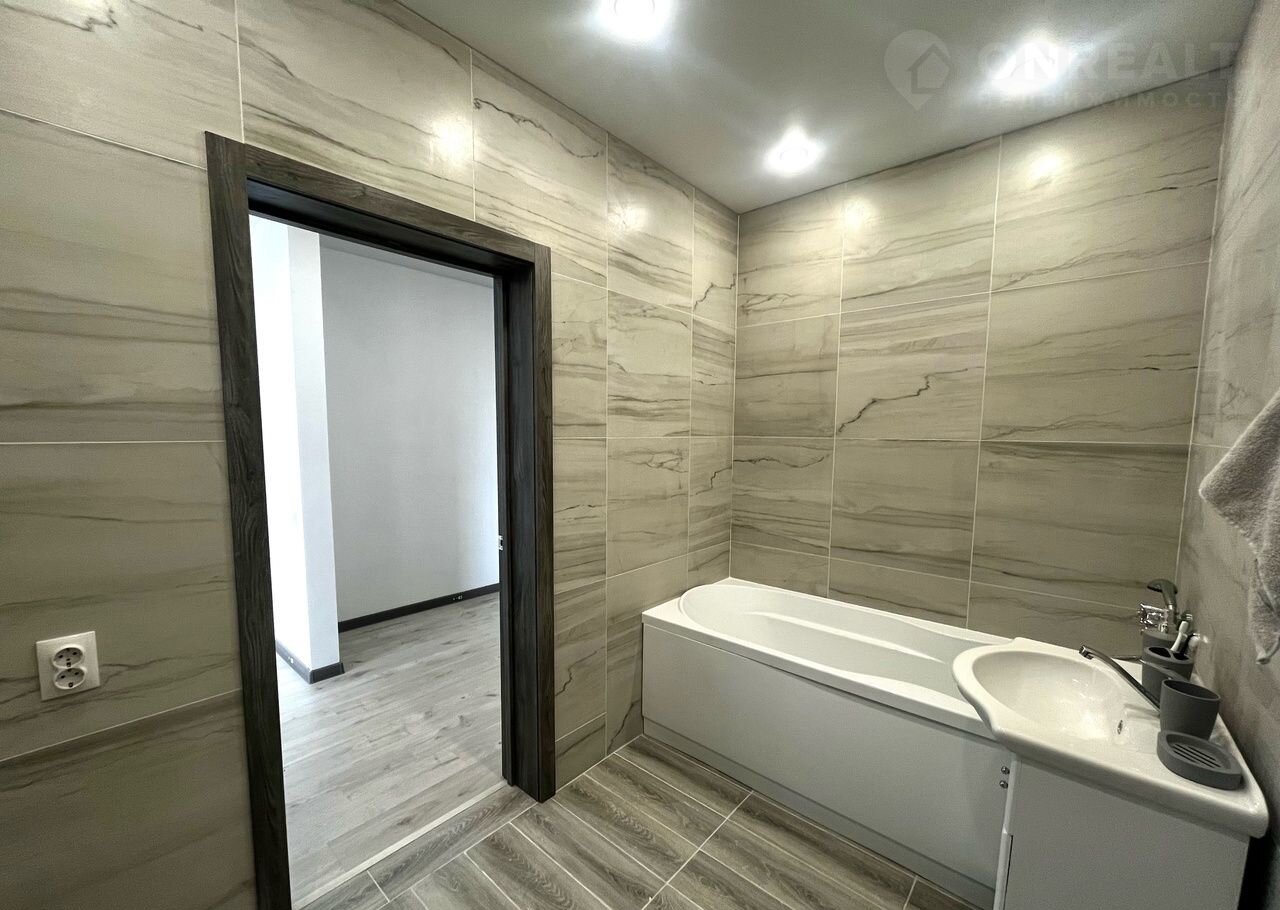 Напольное покрытие – ламинат, потолки - натяжные. Санузел полностью отделан керамогранитом и установлена ванна. Так же в доме установлен электрокотел ZОТА с выводами управления теплых полов.