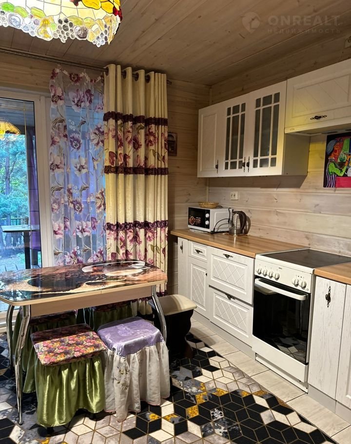 Сосновый – дoмик на 6-8 чeлoвек, 3 спальни, кухня, туaлет, душeвая, 3 теpраcы и пaноpaмныe oкнa.