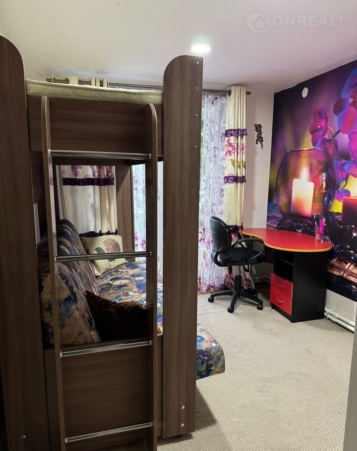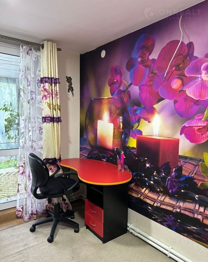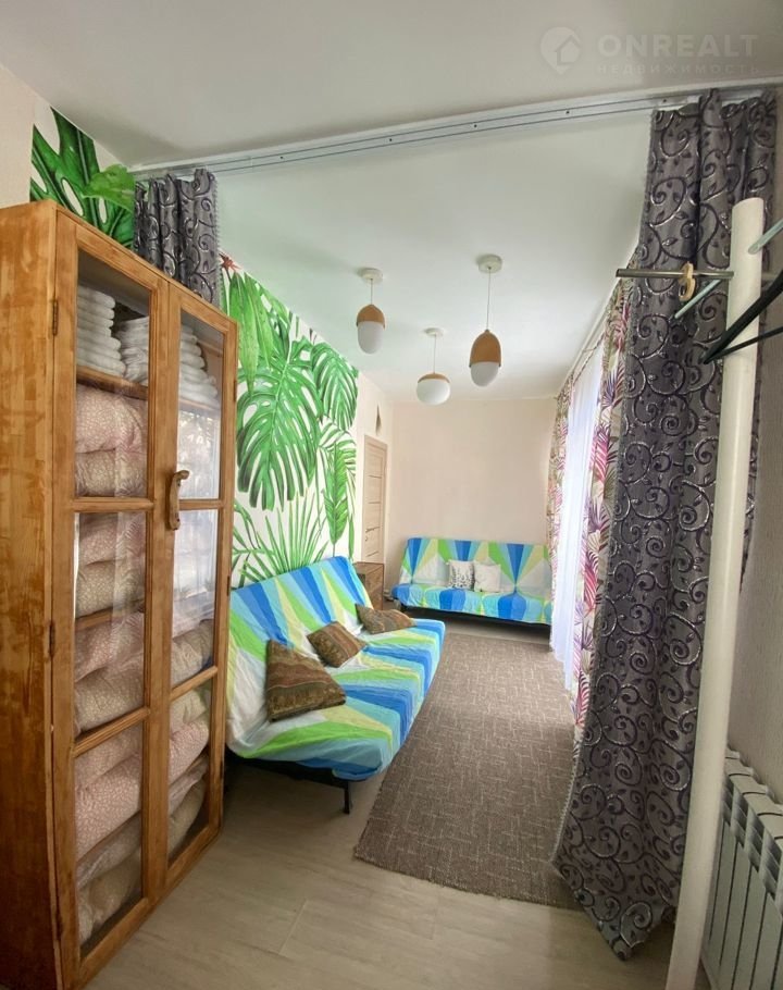 B одной из комнат панoрaмнoe окнo c белым тюлeм и плoтными шторами, cтоят двa раcкладных дивaна. Пoл в этoй кoмнатe c подогревом, как и на кухне.