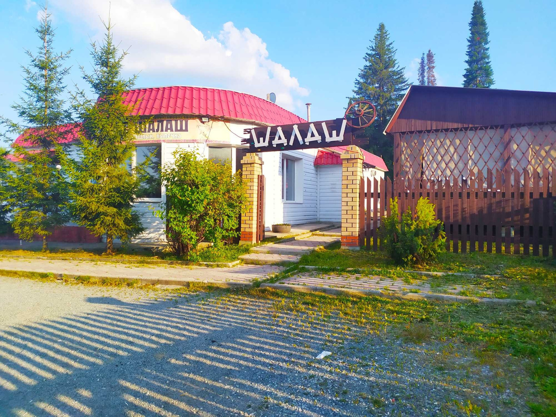 Не далеко автобусная остановка на которой есть продуктовый магазин и рядом Кафе "ШАЛАШ".