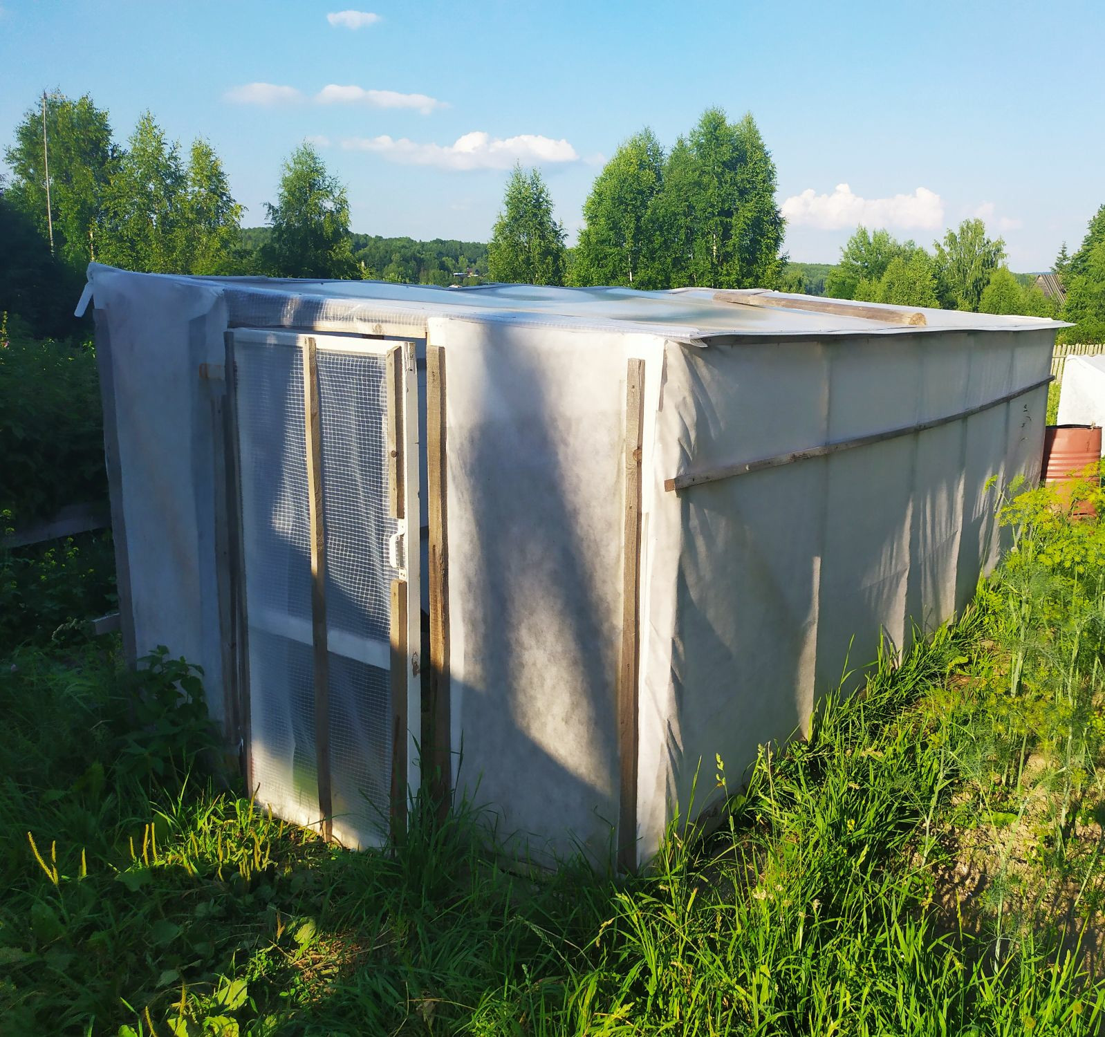 Установлена одна большая теплица и 2