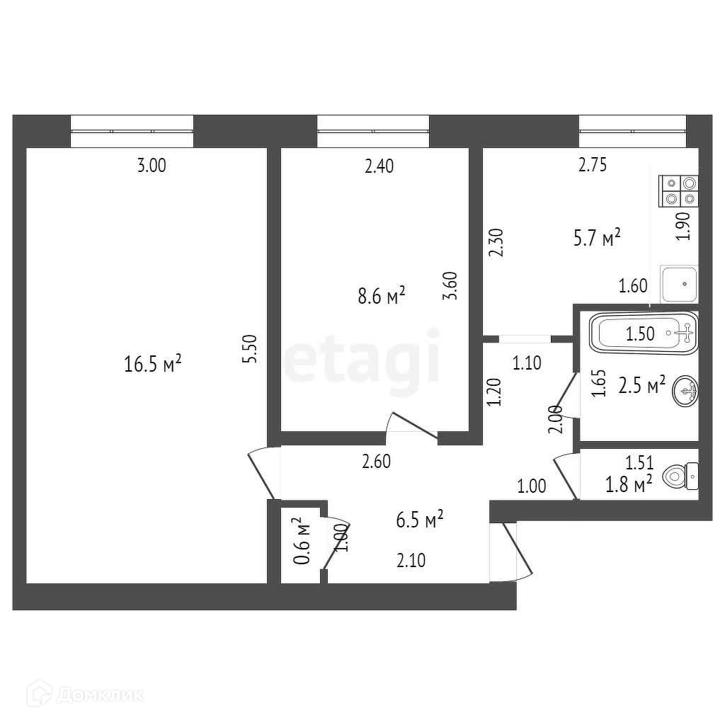 Общая площадь 42 м2