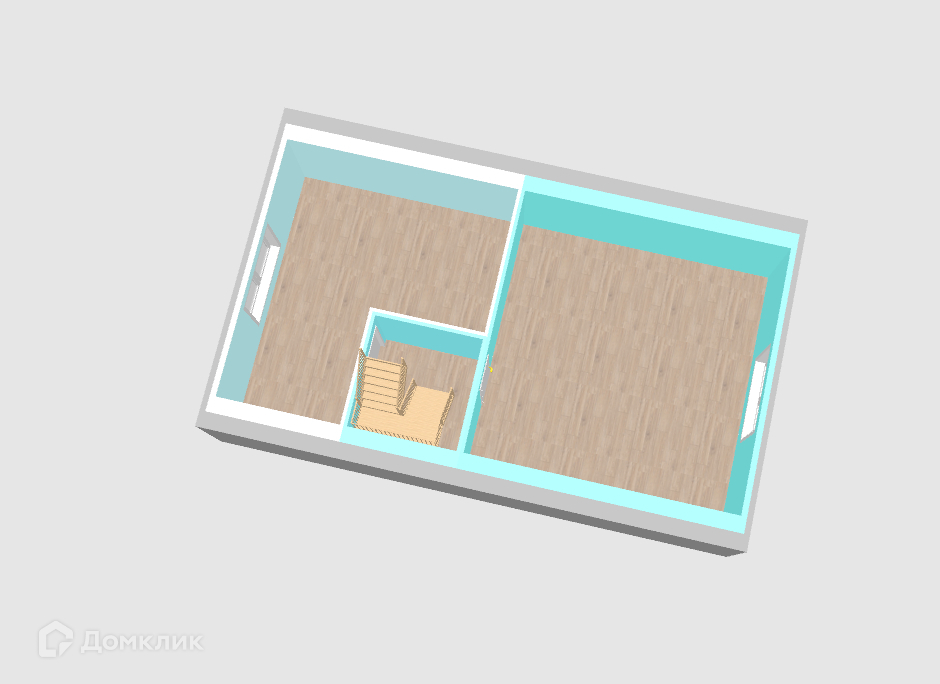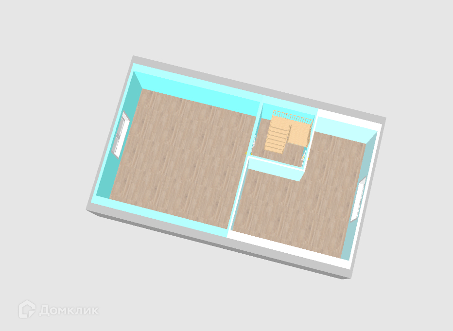 Большая кухня гостиная -34.2 кв.м на первом этаже и две раздельные спальни на втором.