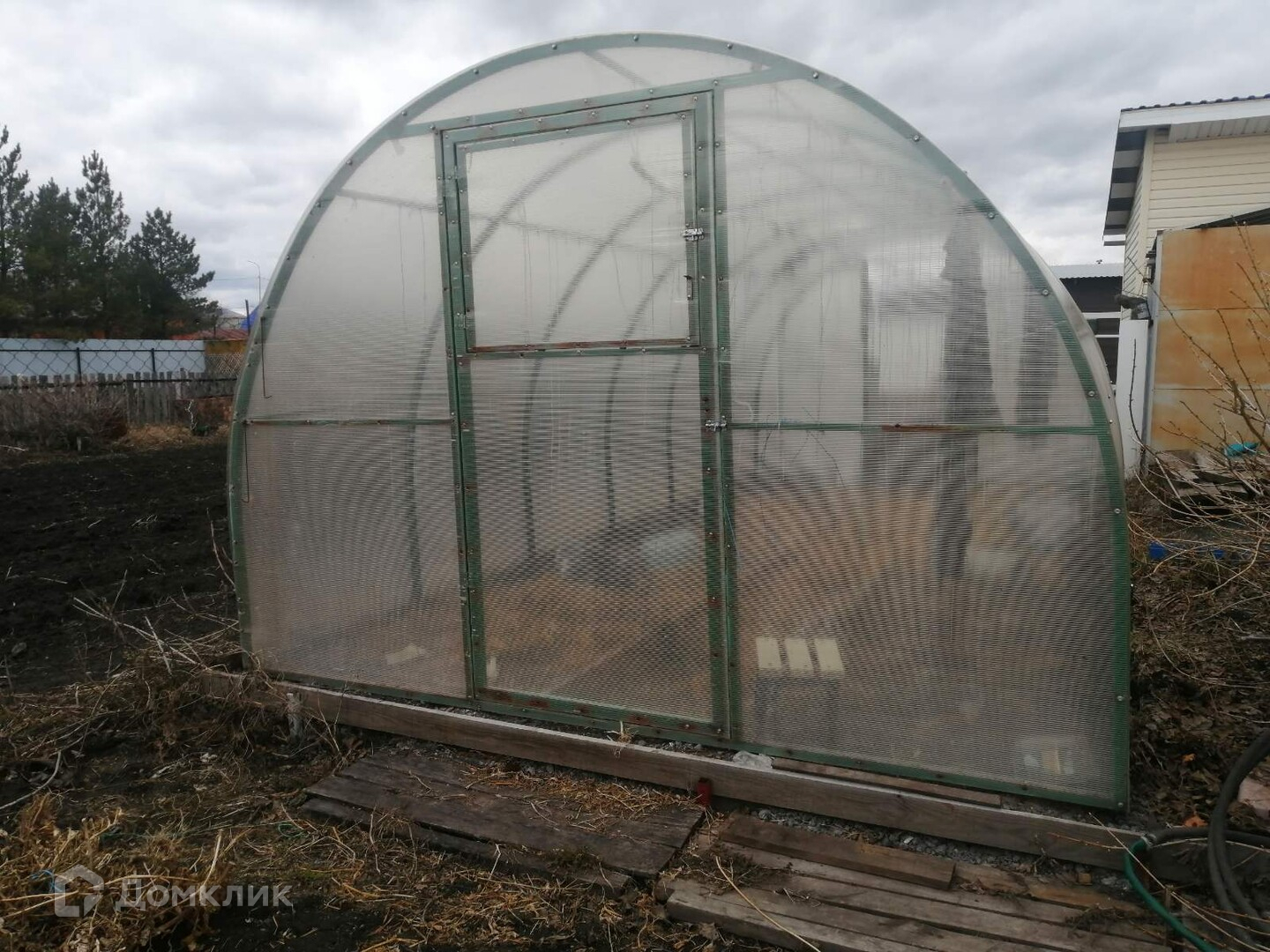 На участке есть баня, насаждения, теплица. Дорога асфальт. В поселок ходит общественный транспорт.
