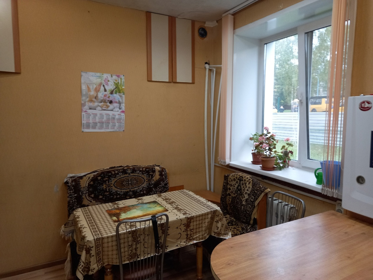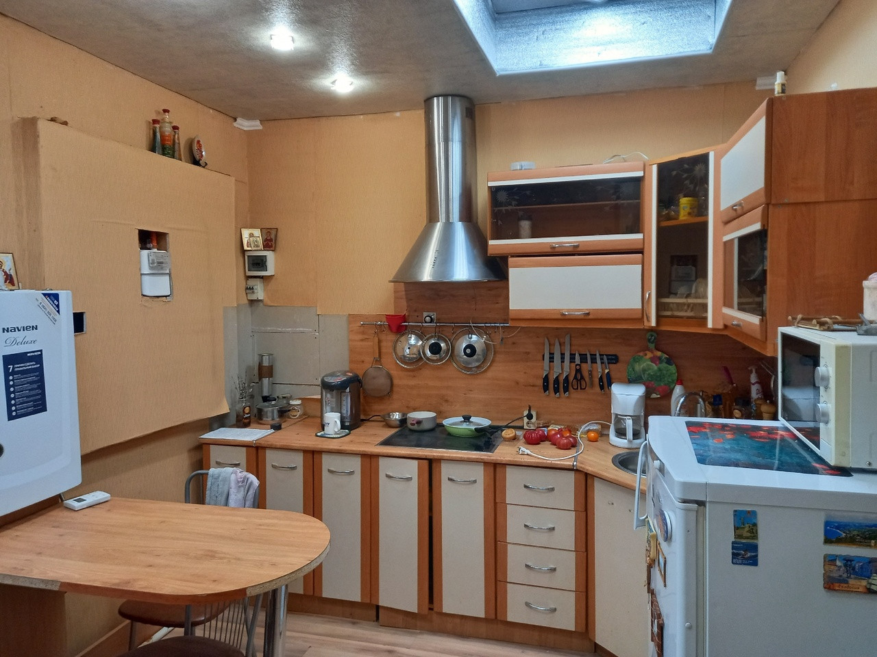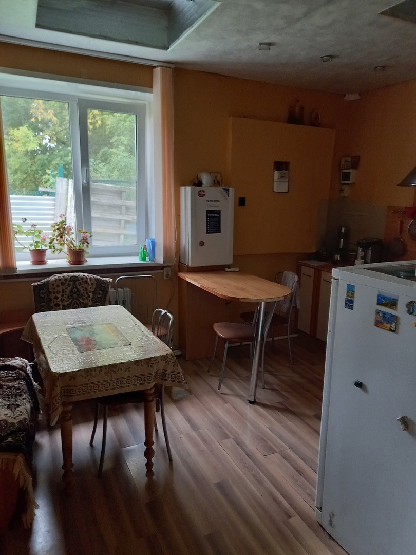 -На 1 этаже просторная кухня, комната