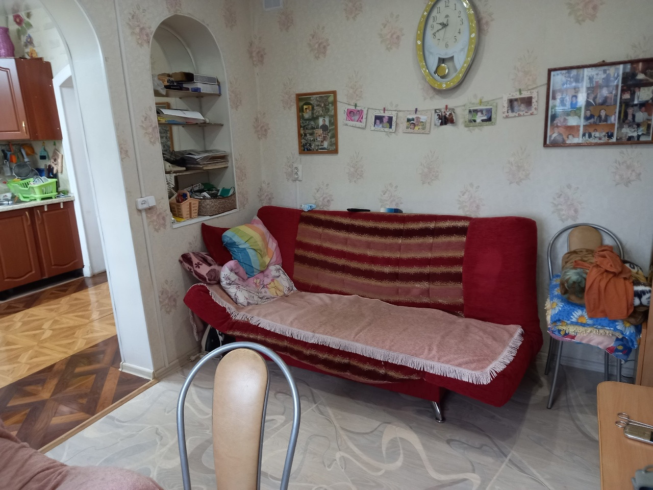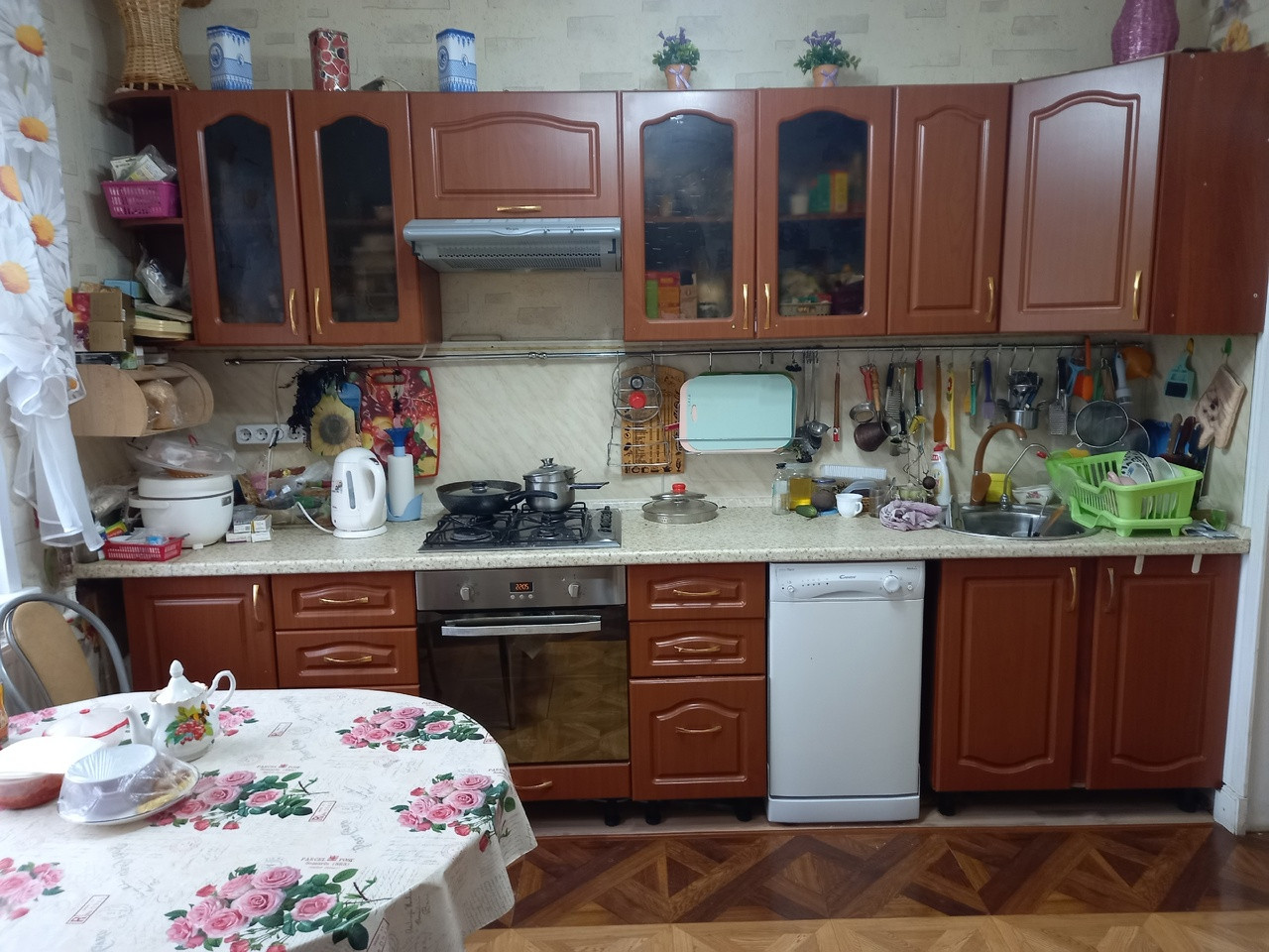 -На 1 этаже просторная кухня, комната