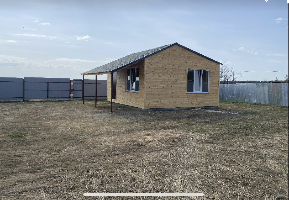 Продам новый дом  стоит на учёте , земля в собственности, газ и электричество подведены к участку  , внутри дома стены обшиты евровагонкой  , евроокна , натяжные моталки , с наружи утеплён и обшит фальшбрусом , фундамент ленточный бетон с арматурой , улица отсыпана  и освещается, в собственности, документы все на руках , до остановочного комплекса 400 метров ,до магазина 500 метров , до Южноуральска 1700 км .Хороший торг за наличный расчёт !!!
